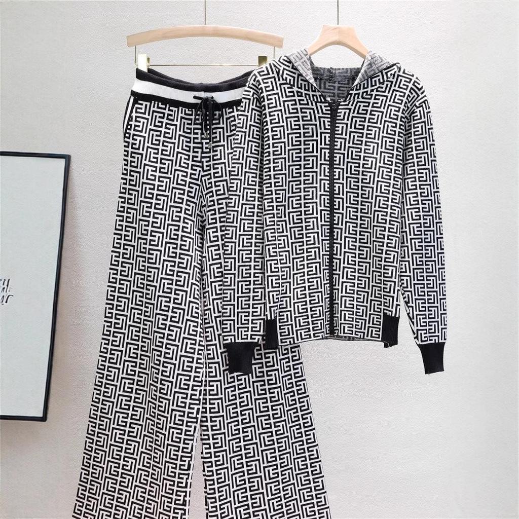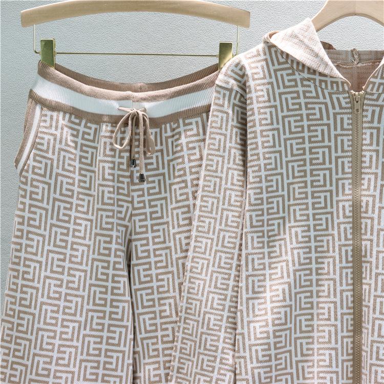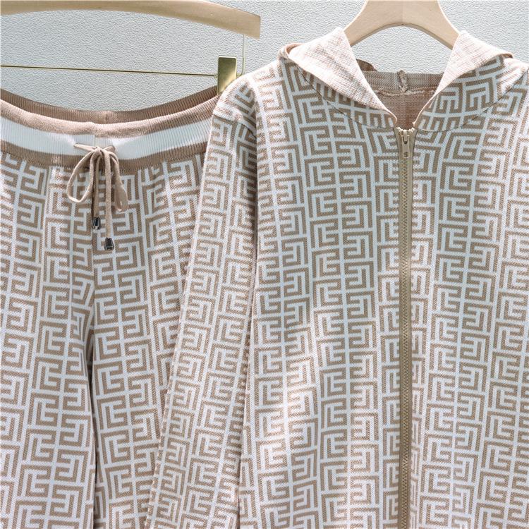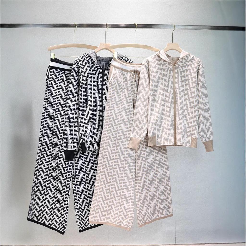 Европейский и американский женский трикотажный костюм-двойка с худи и широкими брюками для весны и осени