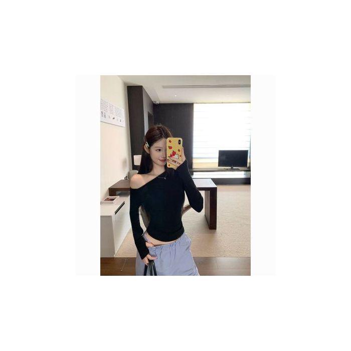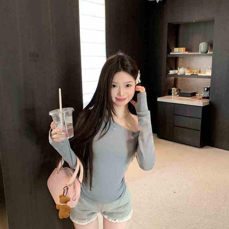 Женский уникальный топ на одно плечо с косым вырезом - Приталенная рубашка с длинным рукавом для весны/осени 2025