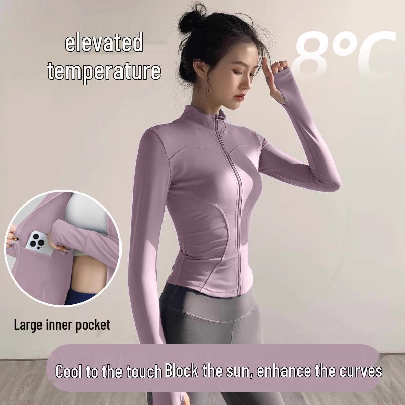 Женская быстросохнущая спортивная куртка с солнцезащитой - Топ с длинным рукавом на молнии для бега и йоги