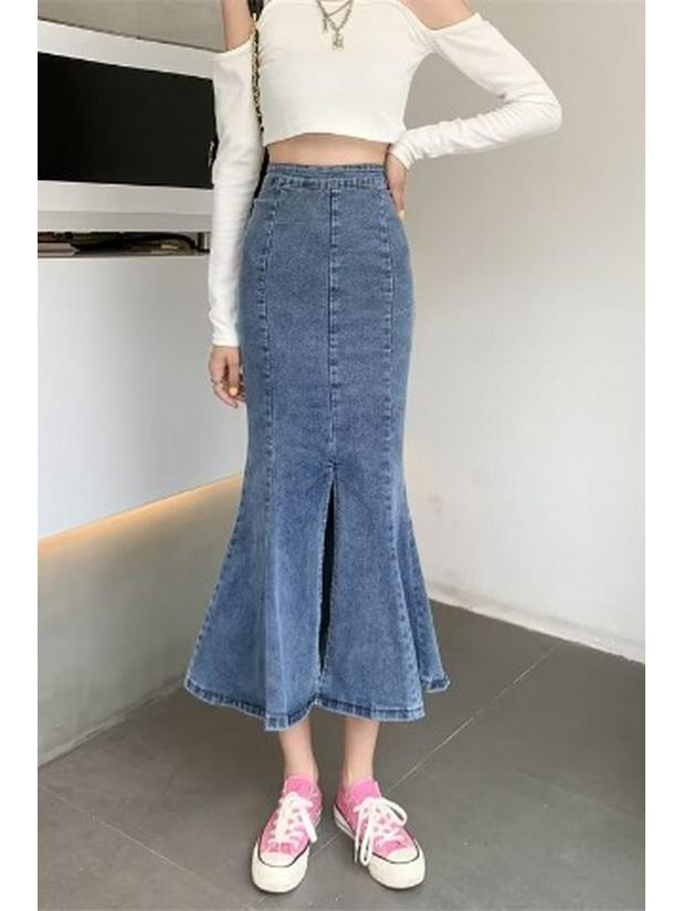 Обновите свой весенне-летний гардероб этой стильной джинсовой юбкой миди.. Дизайн с высокой талией создает стройный силуэт, идеально подходящий для тех, кто ищет выигрышную посадку.. Эта юбка, изготовленная из качественного денима, имеет уникальный подол «рыбий хвост» с оборкой и разрезом, что добавляет игривости вашему ансамблю.. Его однотонный рисунок и А-силуэт делают его универсальным для любого случая, а отсутствие декора сохраняет его непринужденно шикарным.. Идеальная для миниатюрных фигур, эта спортивная юбка сочетает в себе комфорт и моду, что делает ее обязательным элементом сезона.