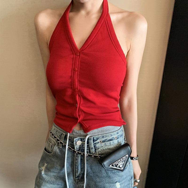 Американский Ретро Сексуальный Халтер Без Спины Женский Летний Приталенный Топ - Модный Необычный Жилет