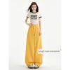 Желтая футболка со стразами и коротким рукавом, облегающая фигуру - Женская летняя футболка в американском стиле горячей девушки