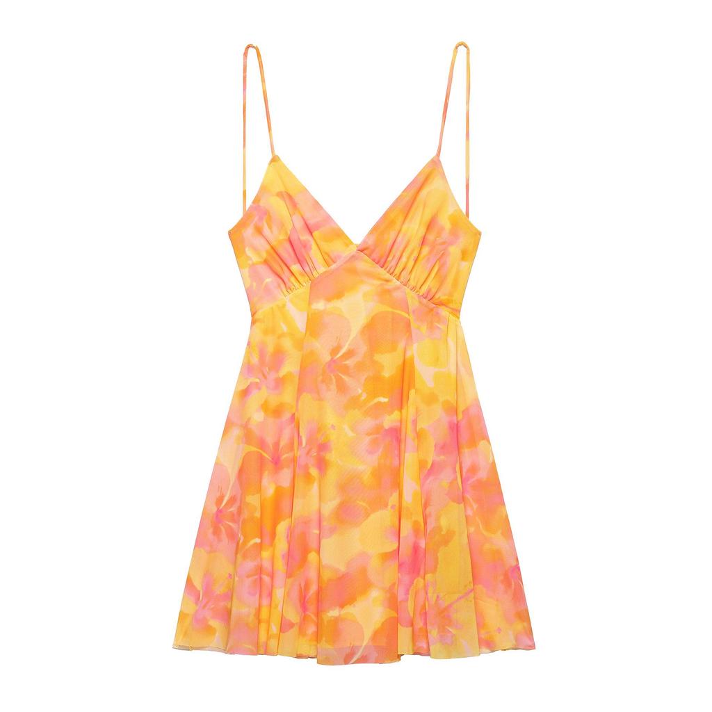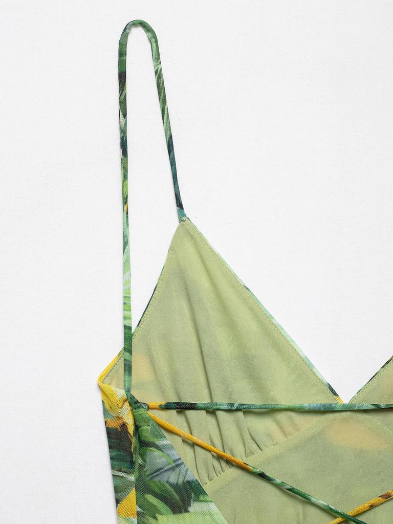 Летнее женское платье из шелковой сетки с принтом, 2025