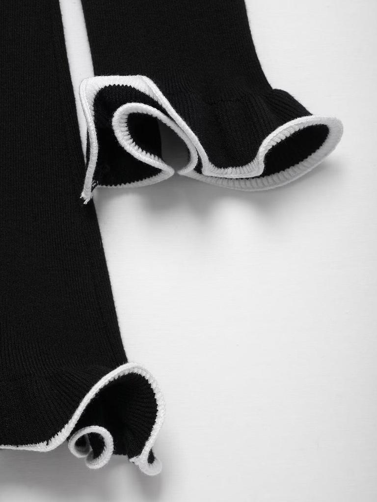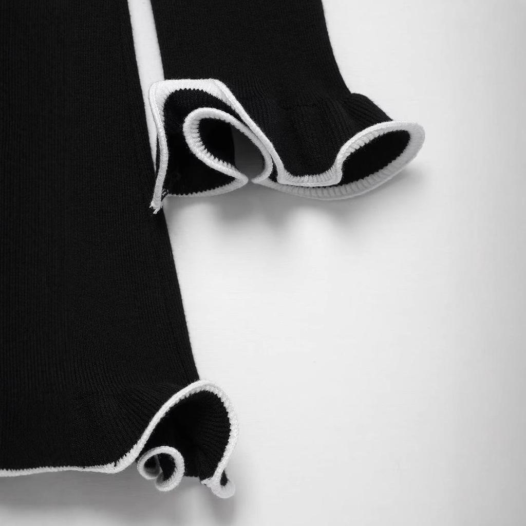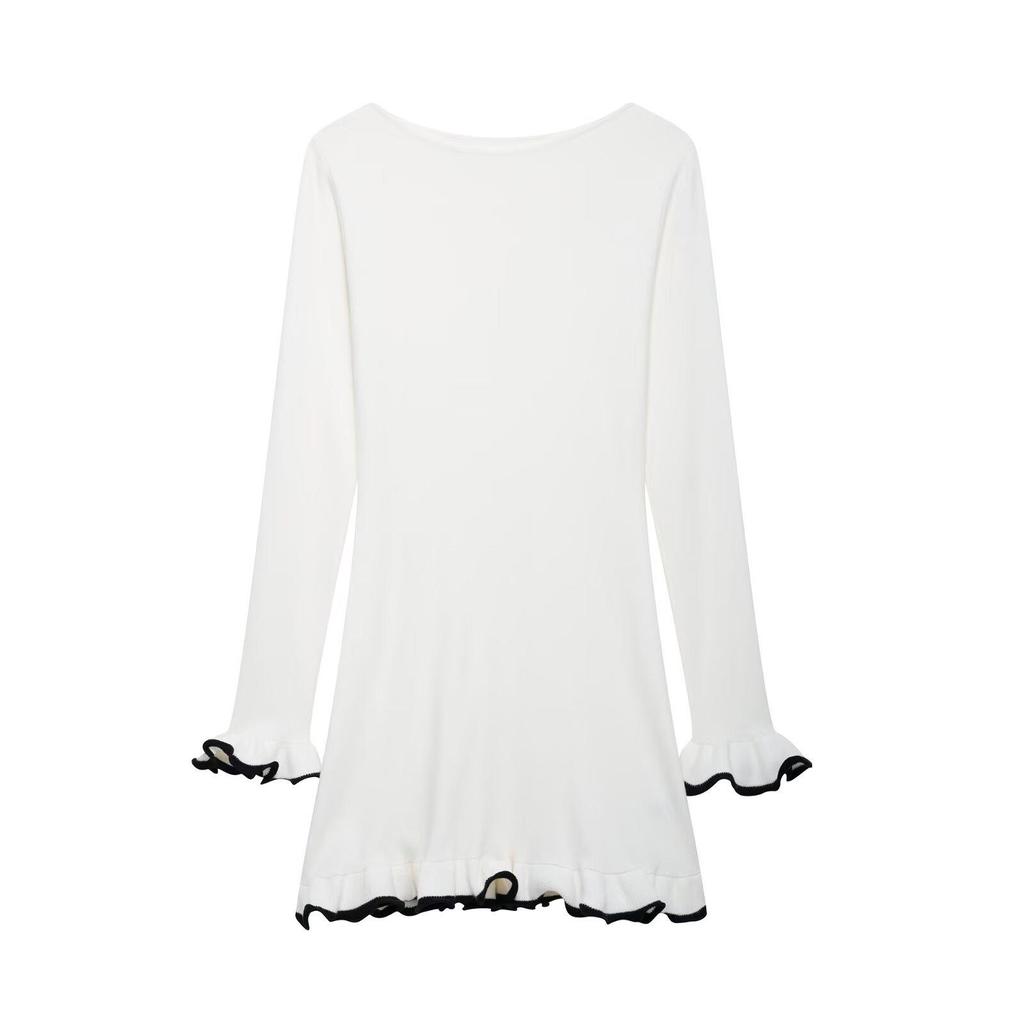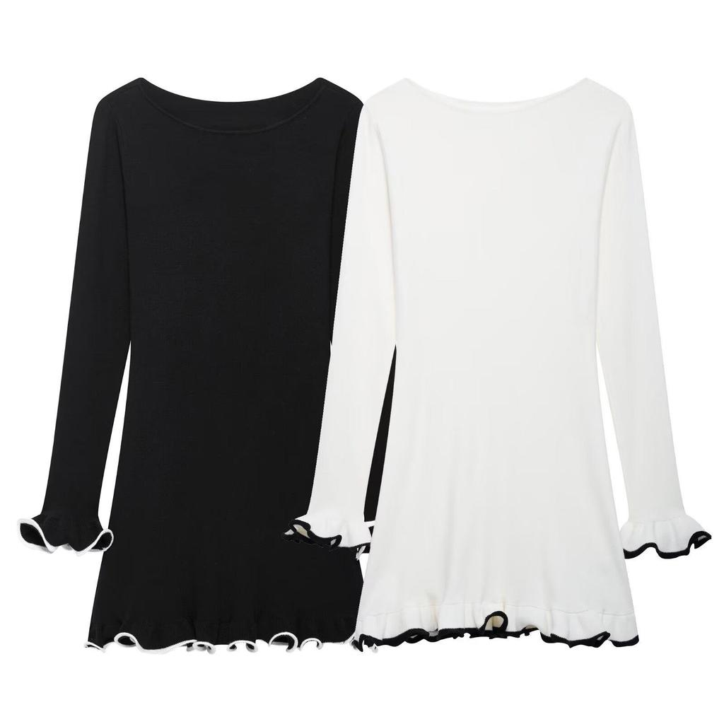Весна 2025 Женское вязаное платье в европейском и американском стиле с обработанным краем, длинным рукавом, готовое для вечеринки.