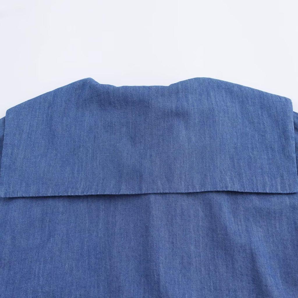 Женская хлопковая рубашка с воротником на пуговицах и длинным рукавом, имитирующая деним, весна 2025 (Европейский/Американский стиль)