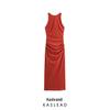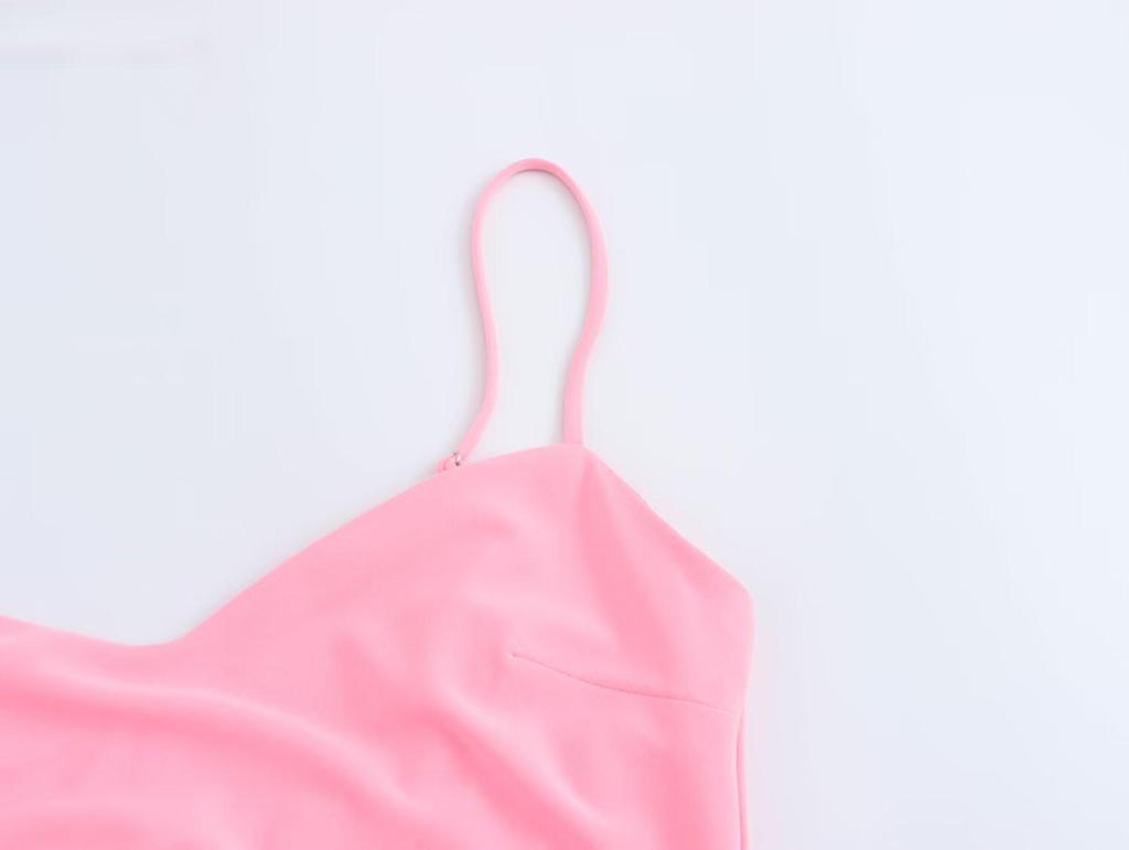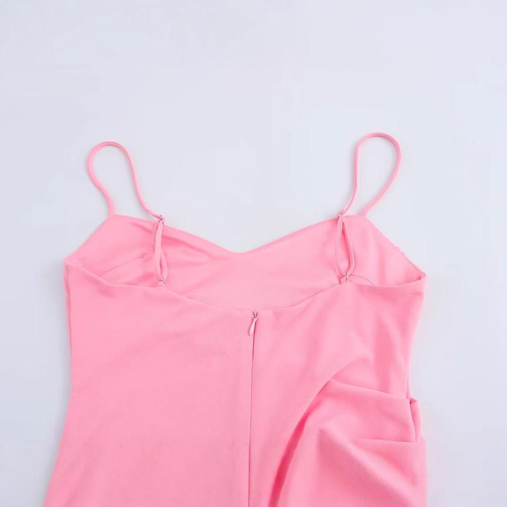 Весна 2025 Женское европейское и американское плиссированное миди-платье на тонких бретелях