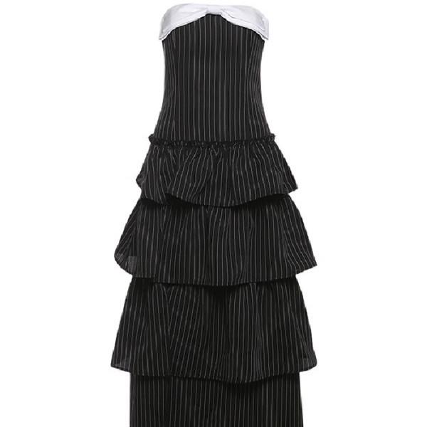 Европейское и американское полосатое летнее миди-платье без бретелек, многослойное, с высоким разрезом для женщин