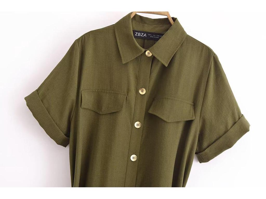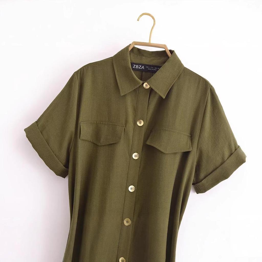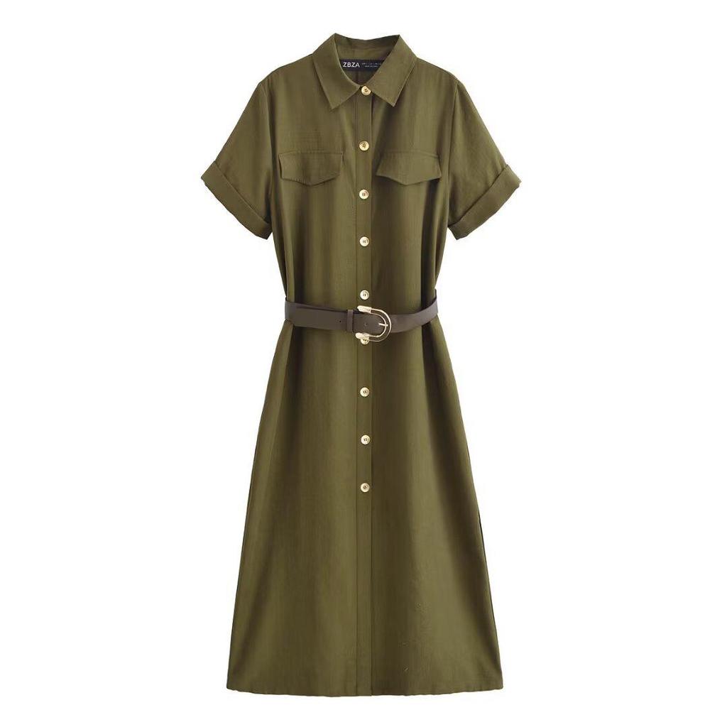 Весна 2025 Женское платье в европейском и американском стиле с поясом, коротким рукавом и отложным воротником