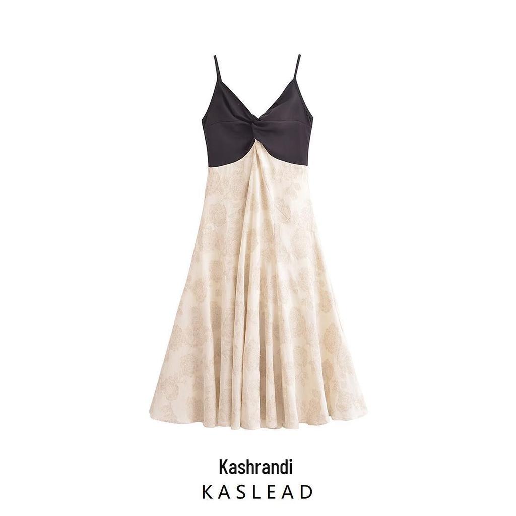 Весна 2025 Женское платье в европейском и американском стиле, длинное, на тонких бретелях, жаккардовое, с цветными блоками