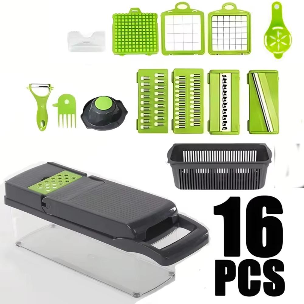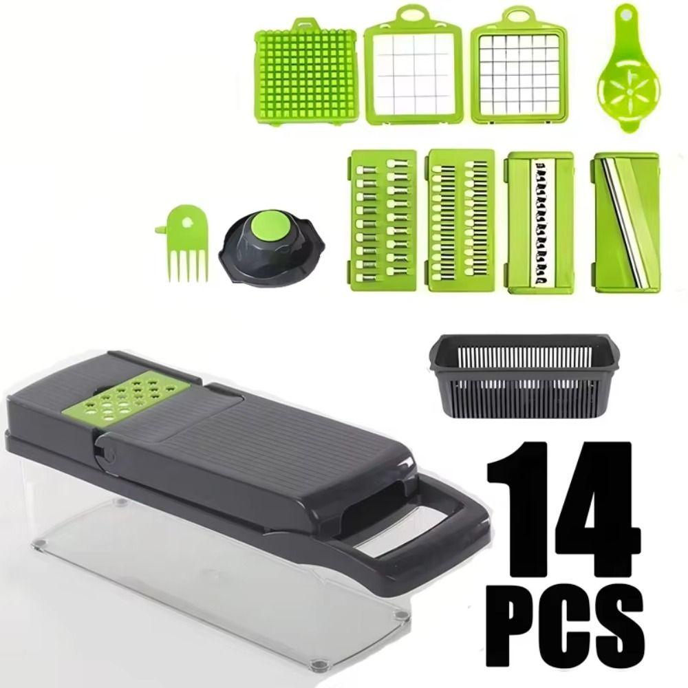 with Basket 14/16 In 1 Vegetable Chopper with Handle Vegetable Slicer Portable Grater Kitchen Use