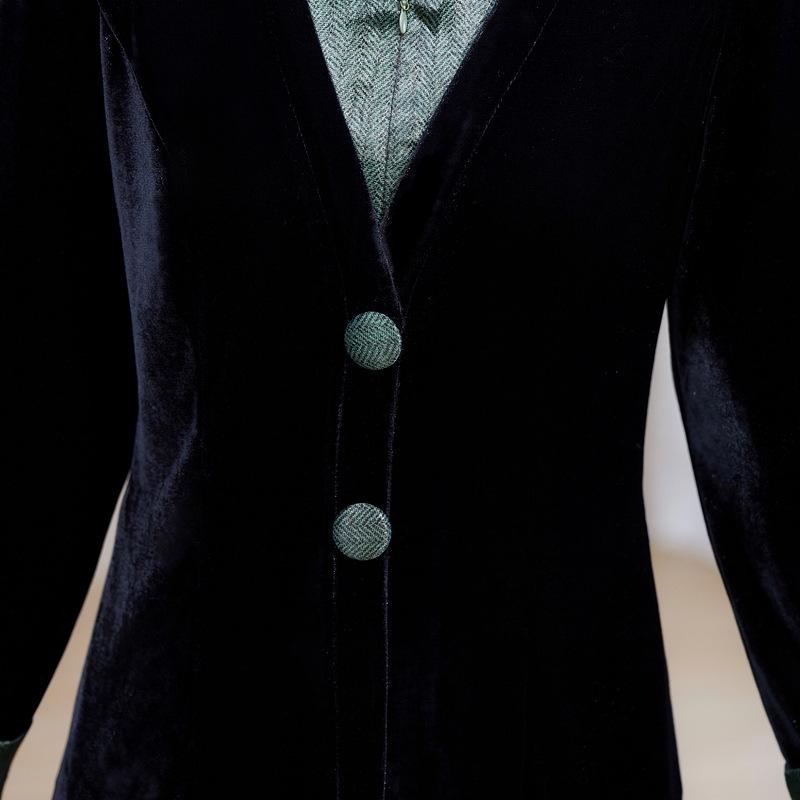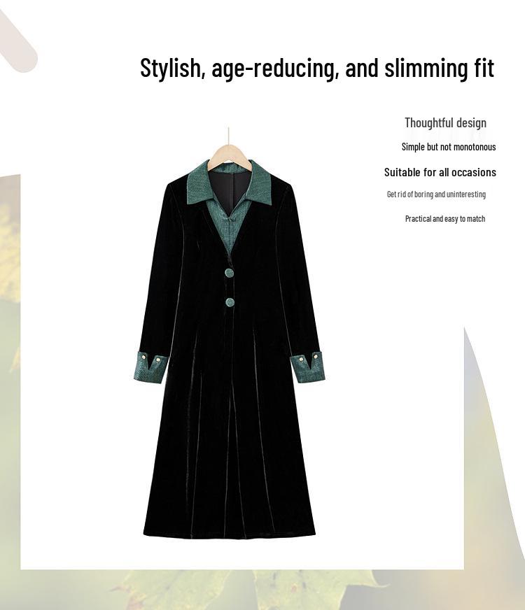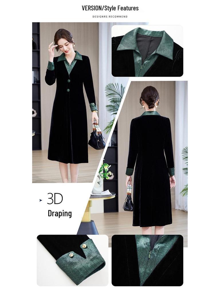 Весеннее платье с V-образным вырезом и длинными рукавами из золотого бархата для женщин среднего и пожилого возраста