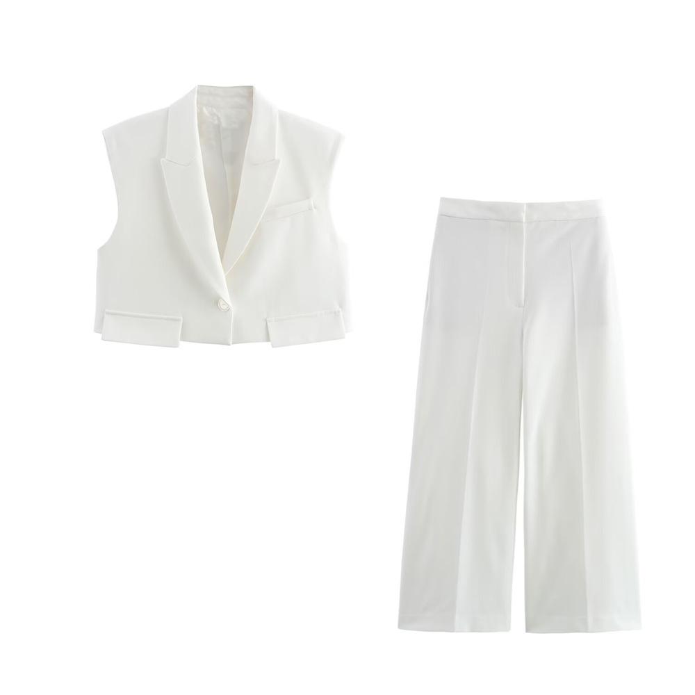 Пополните свой гардероб этим шикарным и универсальным ансамблем, идеальным для современной женщины. Этот комплект включает стильный приталенный жилет и брюки с высокой посадкой и широкими штанинами, обеспечивающие как комфорт, так и изысканность.. Разработанный с однотонным узором, он без труда дополнит любое мероприятие. Этот комплект, изготовленный из высококачественного полиэстера, не только долговечен, но и обеспечивает выгодную посадку.. Спортивный стиль добавляет дерзкий штрих, а деталь с клапаном подчеркивает общий изысканный вид.. Идеальный для создания изысканного, но расслабленного образа, этот комплект станет незаменимым дополнением к вашей весенней коллекции.