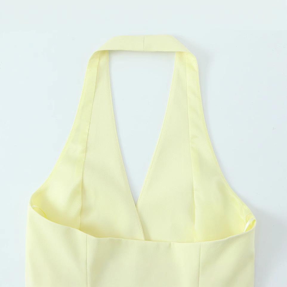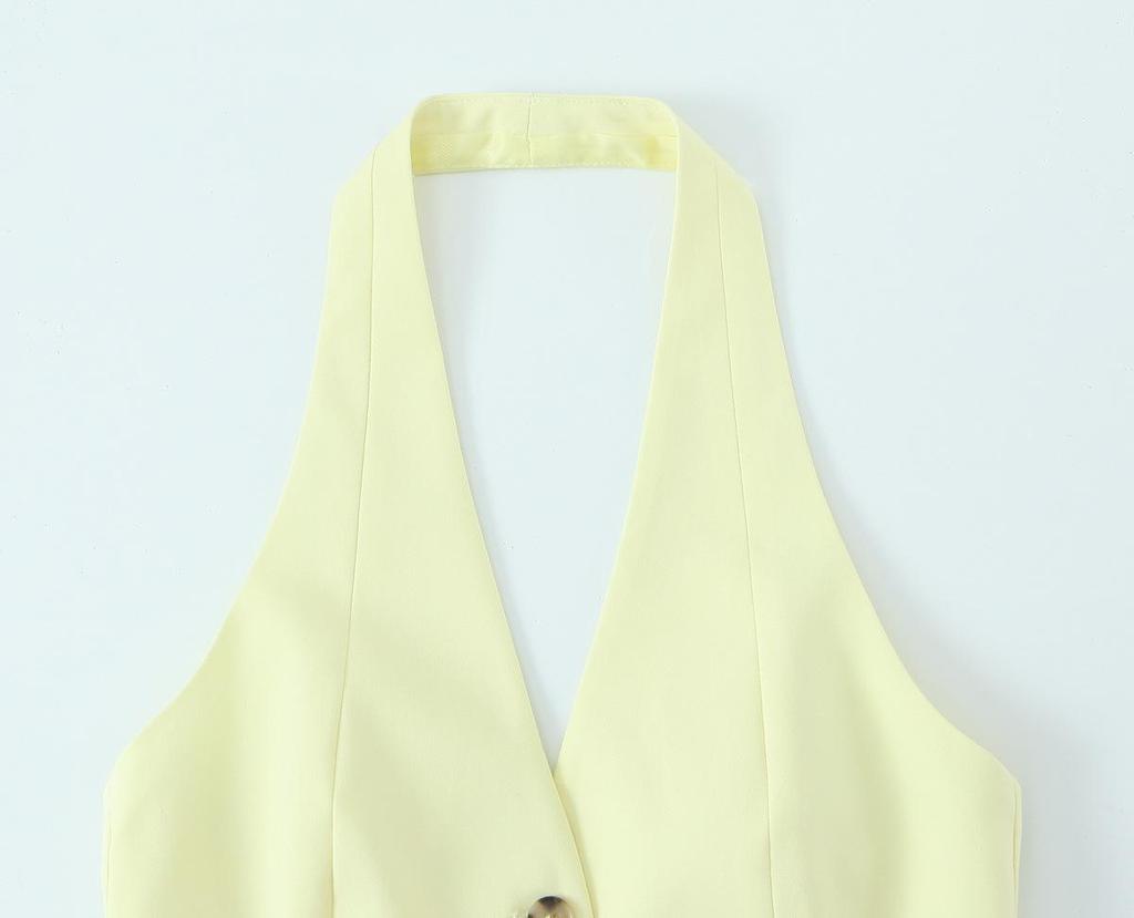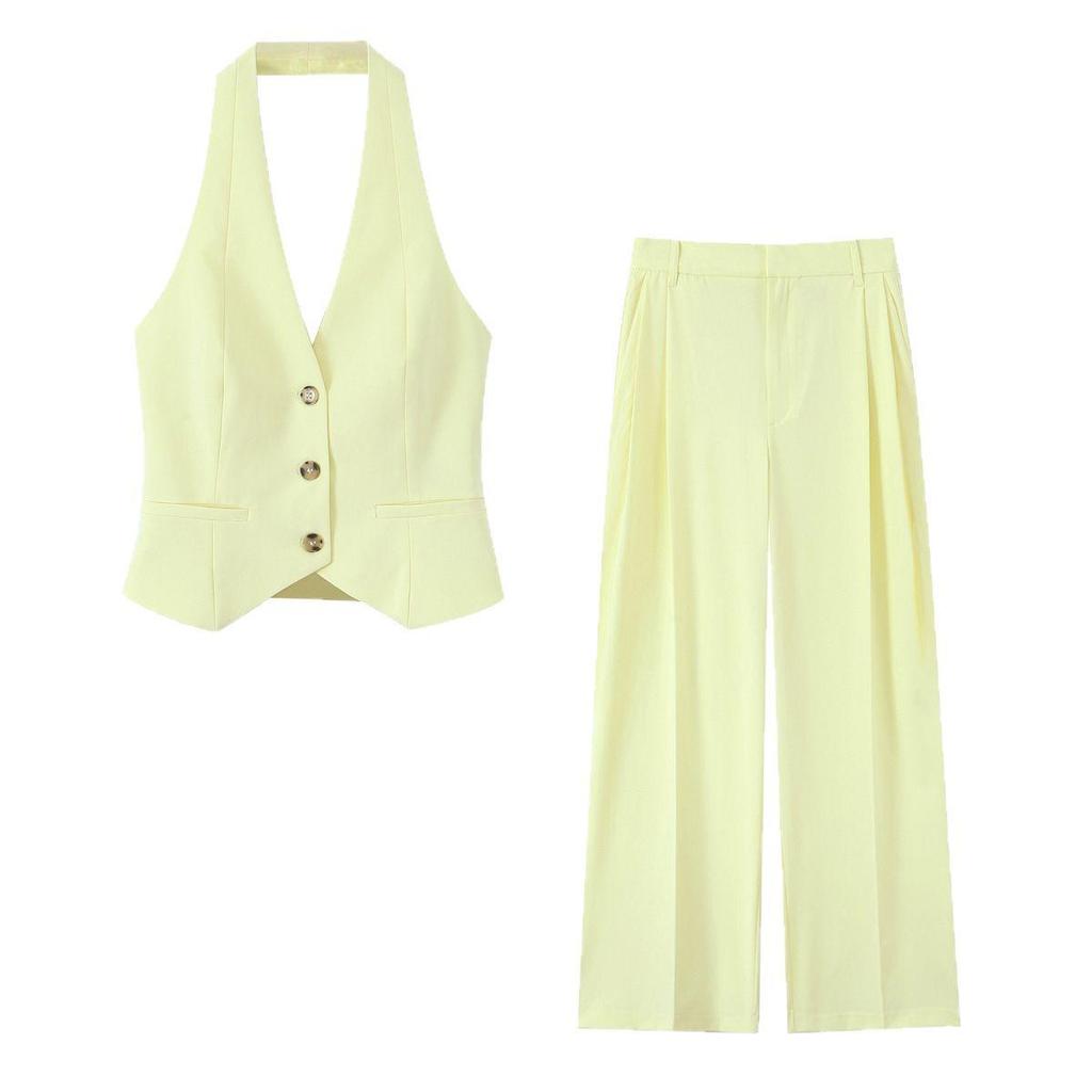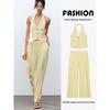 Окунитесь в элегантность с этим стильным комплектом из топа-халтер и длинных брюк, созданным для современной женщины.. Сшитый из высококачественного полиэстера, этот однотонный ансамбль предлагает как комфорт, так и изысканность, что делает его идеальным как для европейского, так и для американского стиля.. Топ с халтером изящно подчеркивает ваши плечи, а подходящие длинные брюки создают цельный, шикарный образ.. Идеально подходящий для различных случаев, этот набор является универсальным дополнением к любому гардеробу.