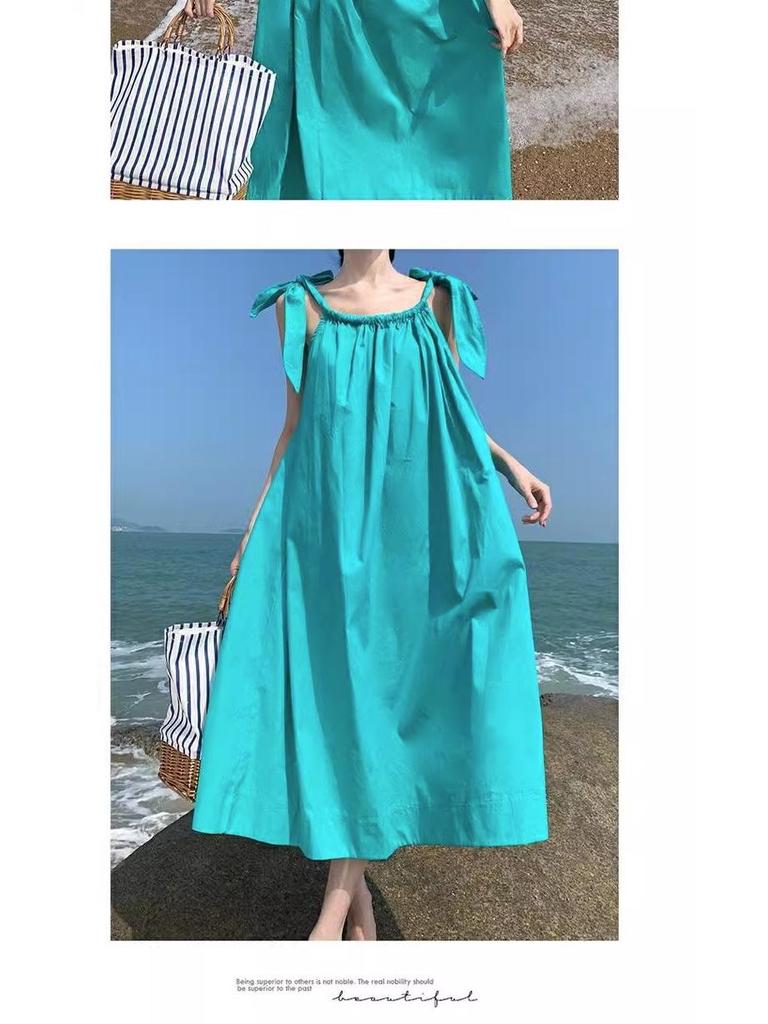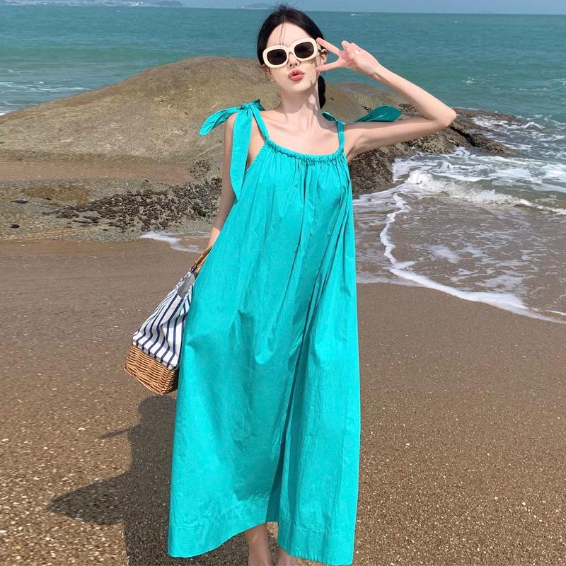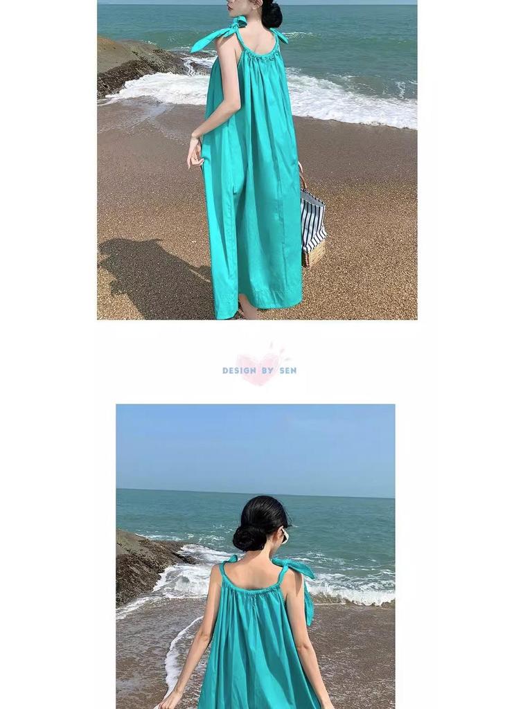 Летнее зеленое приталенное платье-комбинация на завязках для женщин - Морской отдых