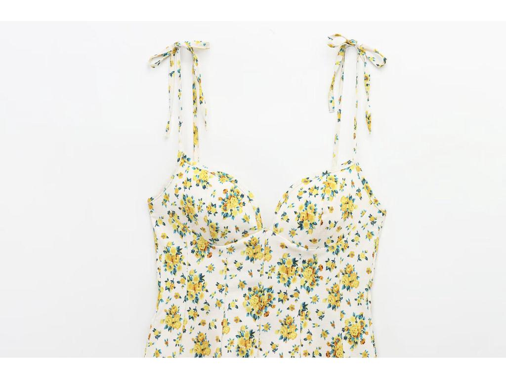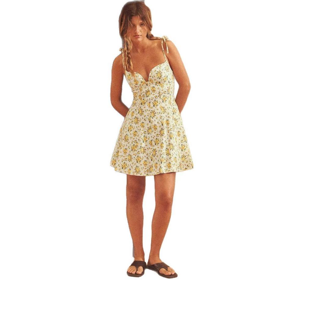 Пополните свой гардероб этим шикарным платьем-слингом с V-образным вырезом и открытой спиной с цветочным принтом, выполненным в европейском и американском стилях.. Изготовленное из высококачественного полиэстера, это платье обеспечивает легкую и удобную посадку, идеально подходящую для теплых дней и оживленных вечеров.. Элегантный цветочный узор добавляет нотку романтики, а дизайн с открытой спиной и нежный бант подчеркивают его женственность и очарование.. Идеальное для различных случаев, это платье без усилий сочетает в себе стиль и изысканность.