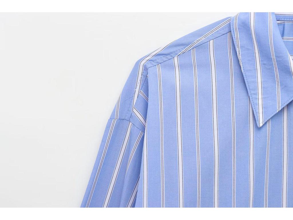 Discover effortless style with the Spring 2025 Women's European/American Striped Poplin Shirt. Crafted from high-quality polyester, this shirt promises comfort and durability. Its eye-catching striped pattern adds a classic yet contemporary touch to any outfit. Featuring long sleeves and a loose fit, it provides both elegance and ease of movement. The tailor neckline adds a sophisticated element, making it a versatile choice for any occasion. Ideal for those looking to effortlessly blend fashion and comfort in their wardrobe.