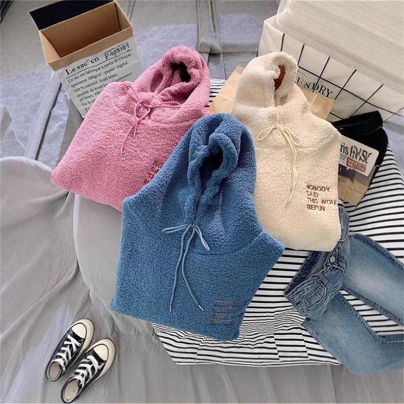 Женская толстовка из флиса из овечьей шерсти в корейском стиле 2024 года - Свободный крой, Утепленная, Идеально подходит для осени/зимы — купить товар онлайн с бесплатной доставкой до всему миру!