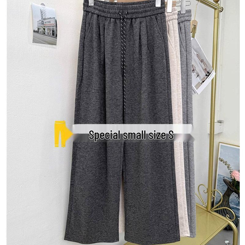 Эти темно-серые брюки широкого кроя предназначены для миниатюрных женщин, особенно ростом от 145 до 150 см.. Они оснащены эластичным поясом для дополнительного комфорта и легкости надевания, что делает их идеальными для повседневных занятий.. Эти брюки, изготовленные из высококачественного полиэстера, идеально подходят для осени и зимы, предлагая повседневный и спортивный стиль.. Дизайн с широкими штанинами добавляет современный штрих, обеспечивая как комфорт, так и современный силуэт.