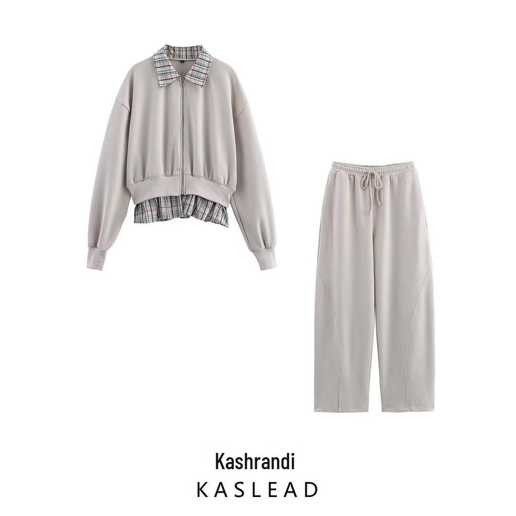 Весна 2025 Женский пуловер в европейском и американском стиле, поплин, пэчворк, с повседневными длинными брюками