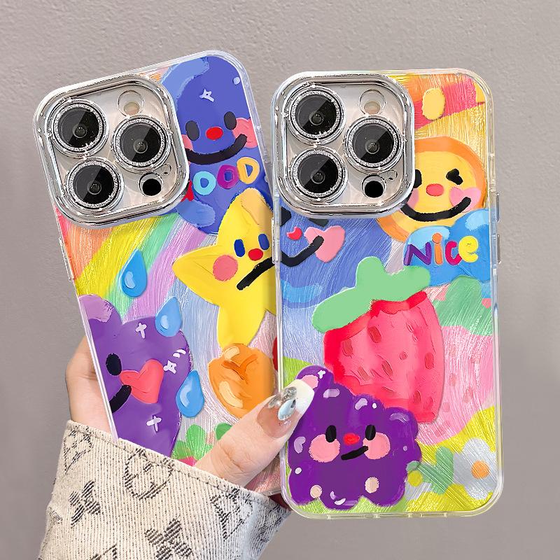 Масляная живопись Граффити Клубника Подходит для Apple 16pro Чехол для мобильного телефона из перьевой пряжи 15 Высококлассный 14 Полная защита Противоударный 13 Забавный X