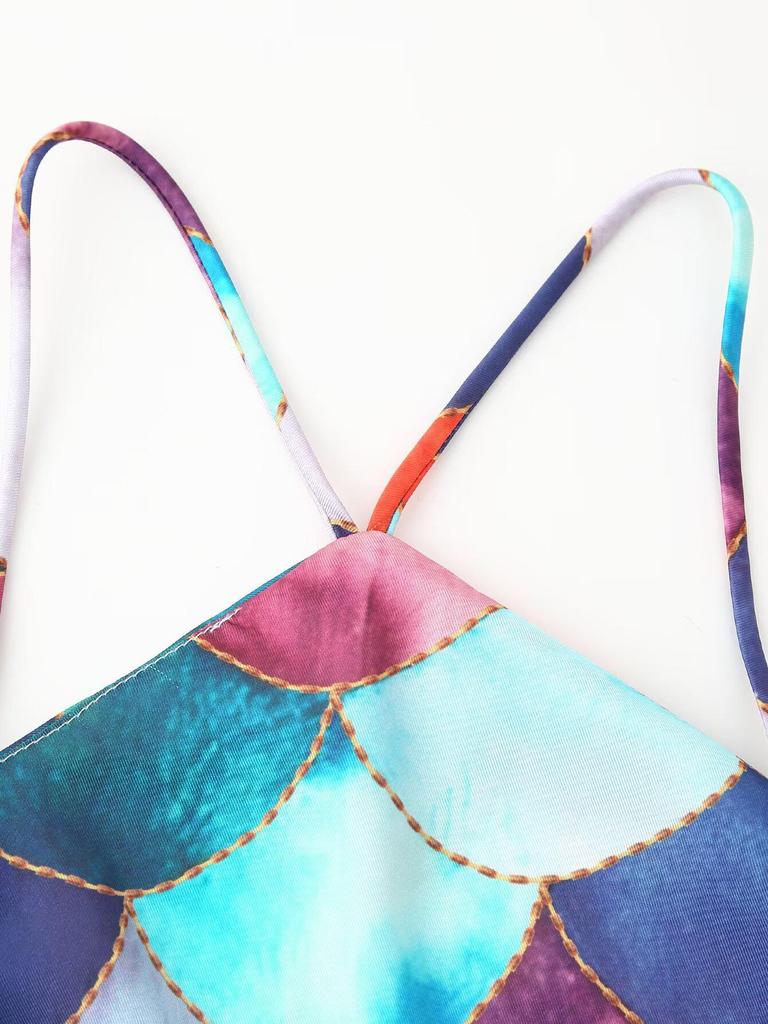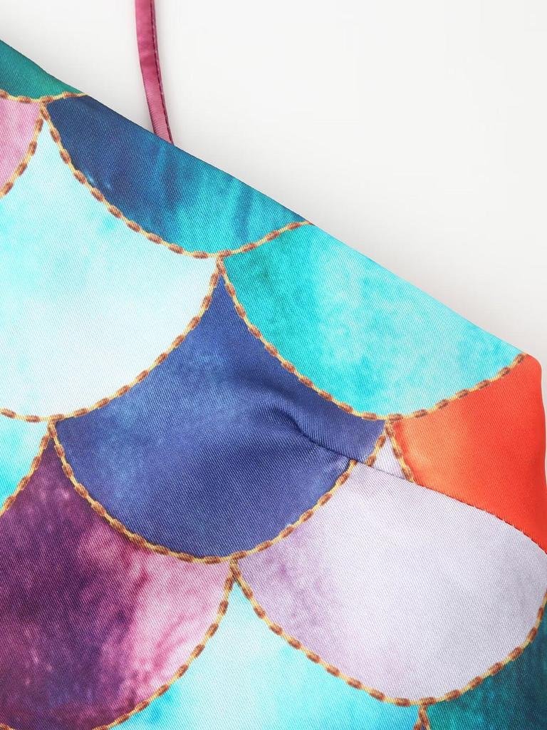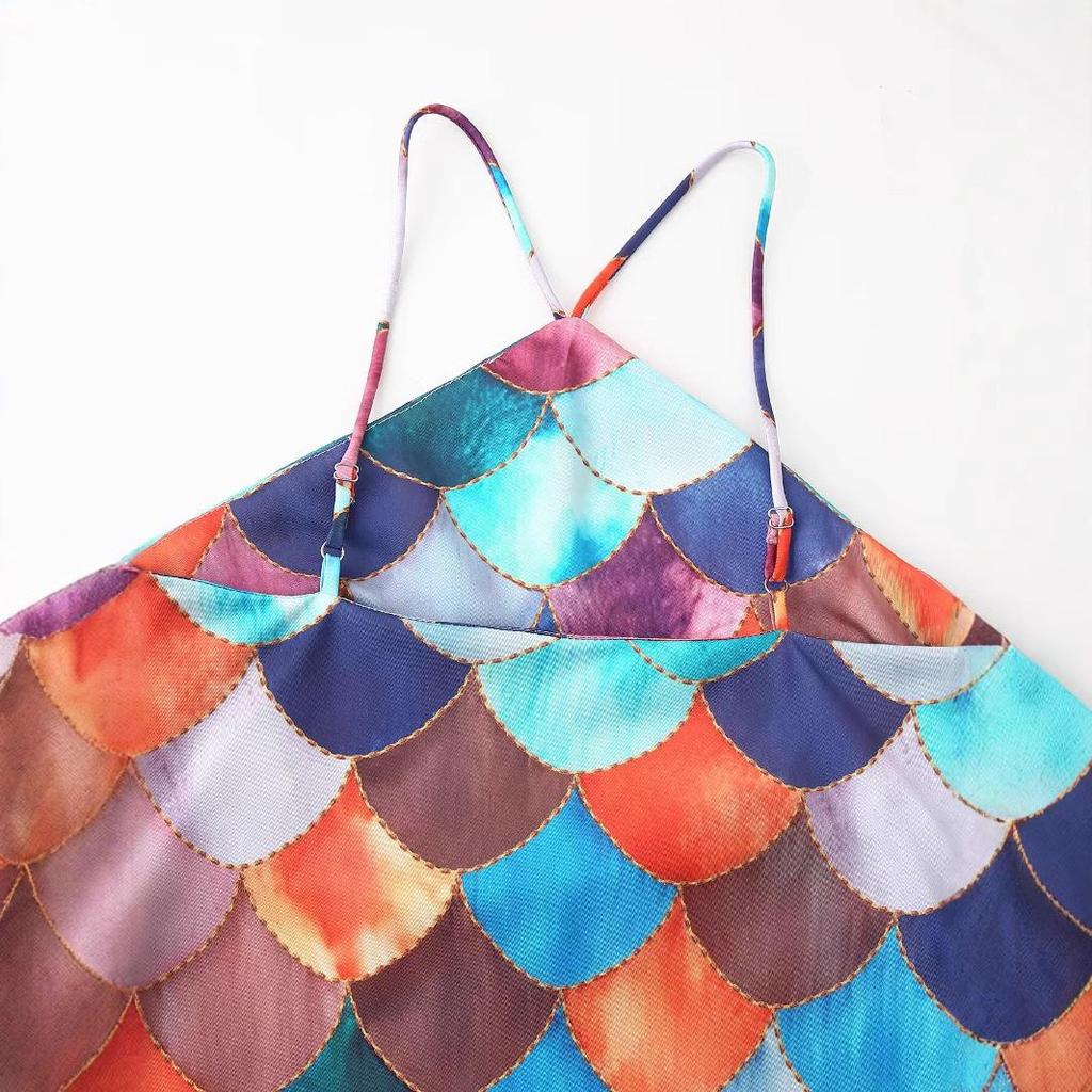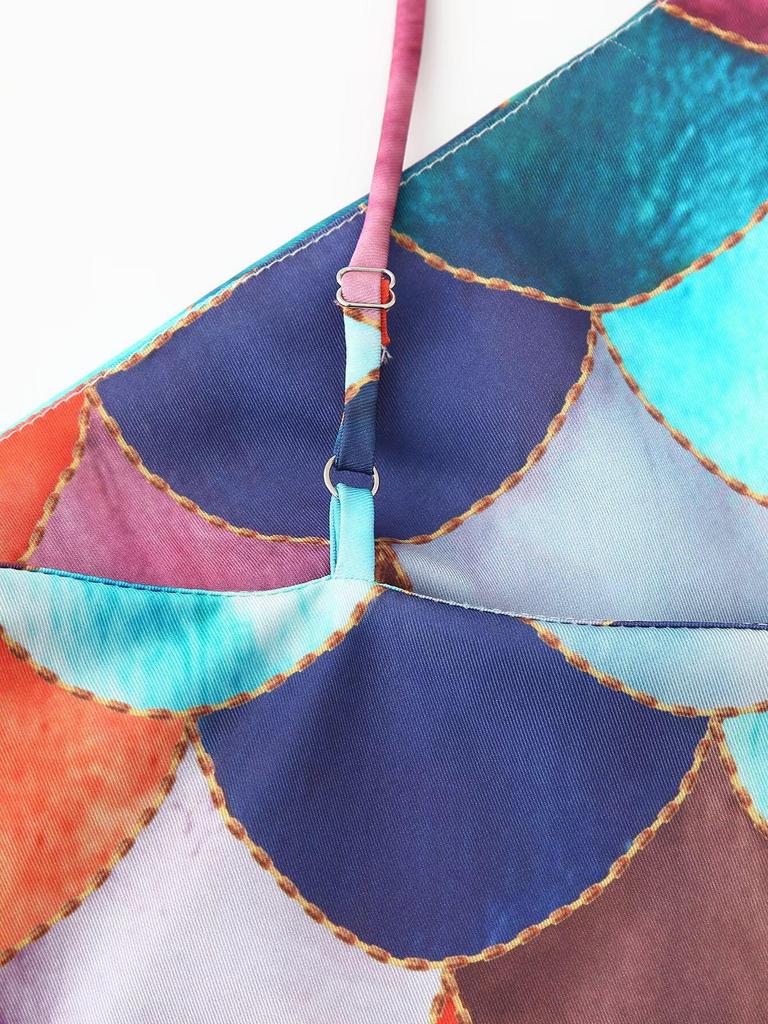 Весна 2025 Женское платье-халтер из атласа с принтом в европейско-американском стиле