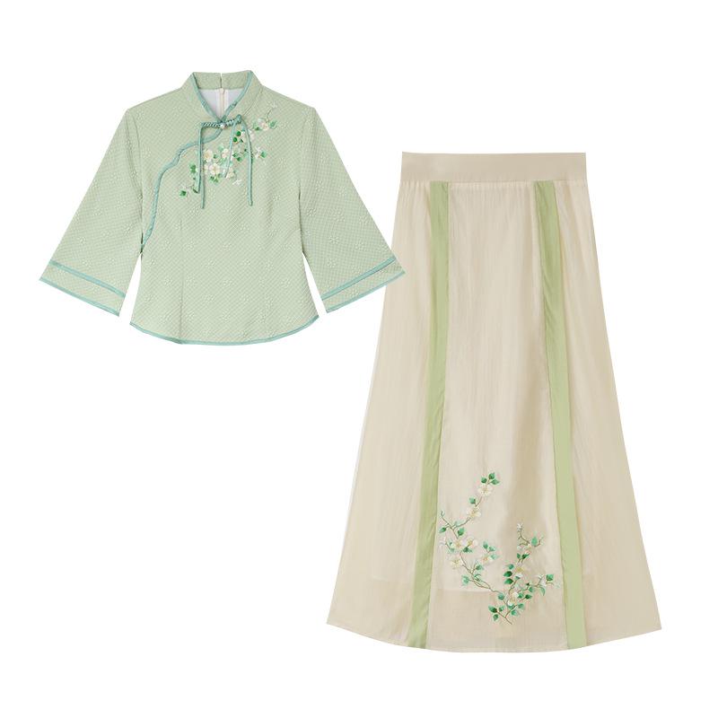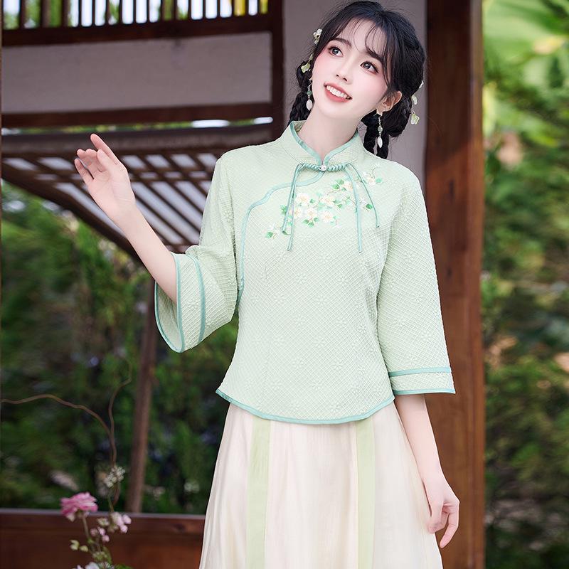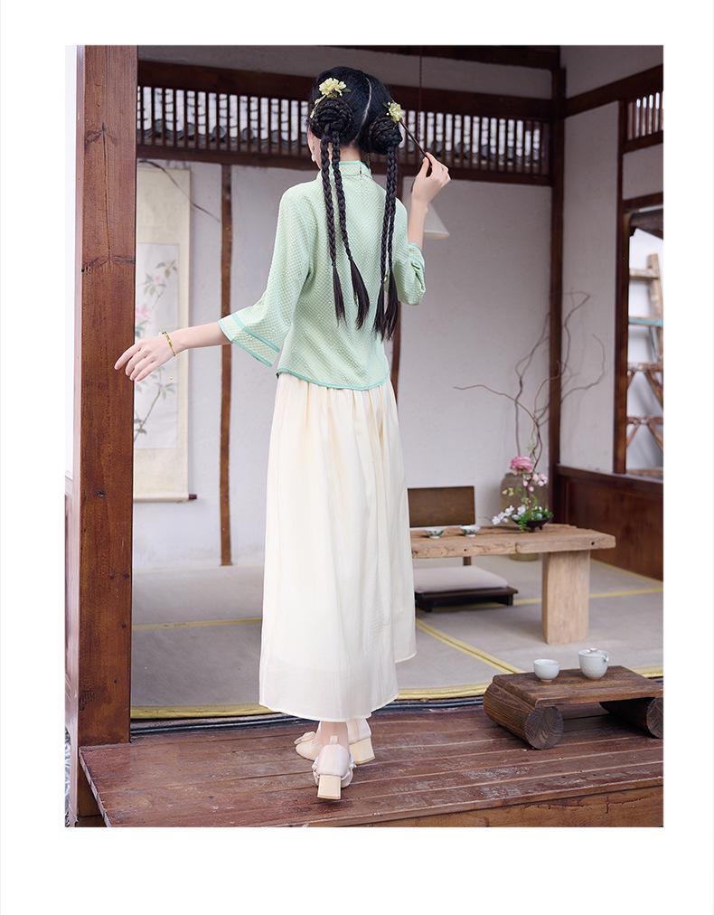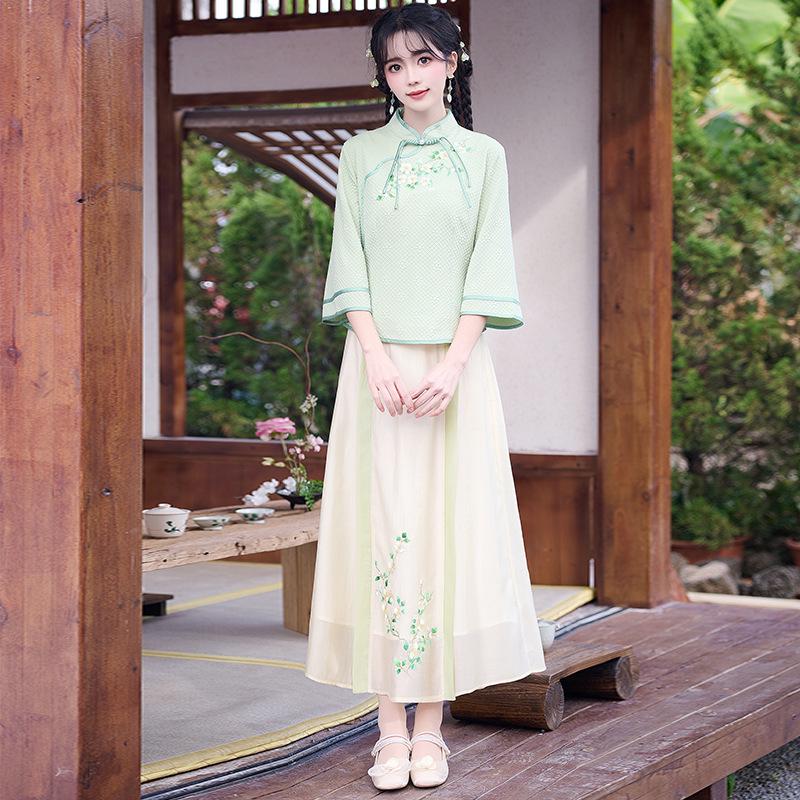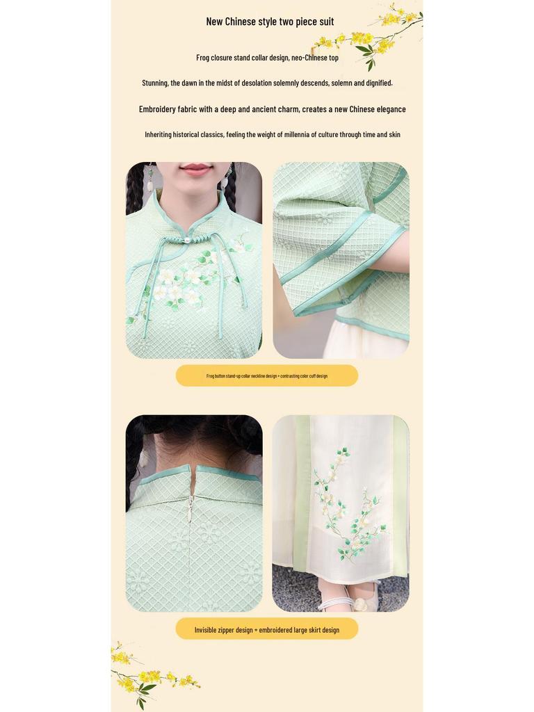 Это изысканное платье представляет собой уникальное сочетание традиционной и современной моды, идеально подходящее для особых случаев.. Изготовленный из высококачественного полиэстера, он обеспечивает комфорт и долговечность.. Платье украшено изысканной вышивкой, вдохновленной элегантным стилем костюма тан, создающей изысканный образ.. Идеальное для чайных церемоний или культурных мероприятий, это платье прекрасно воплощает ретро-шарм, воспевая вневременную элегантность.