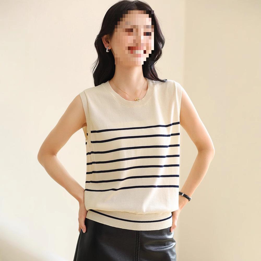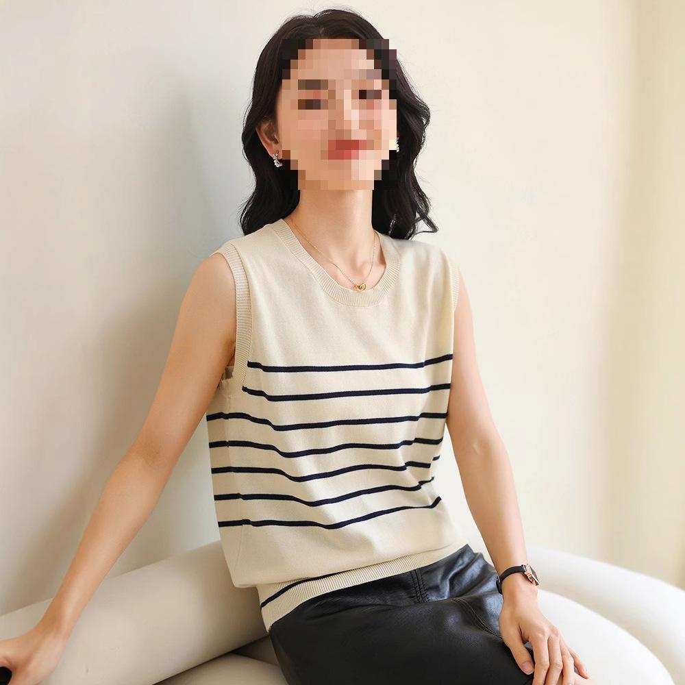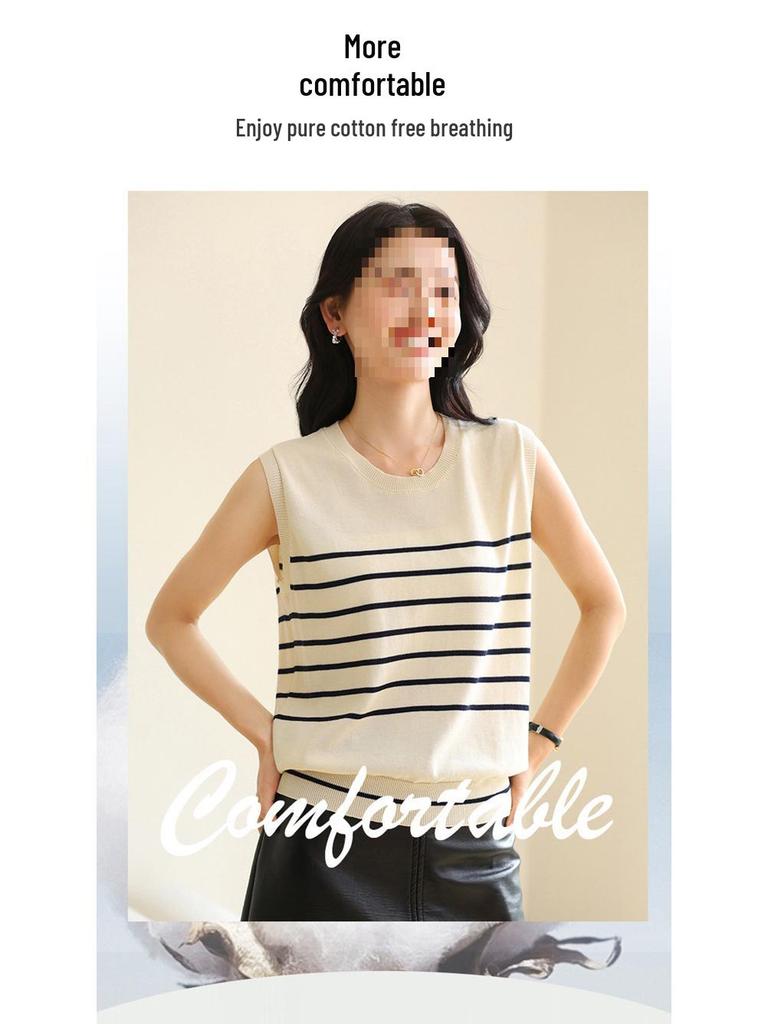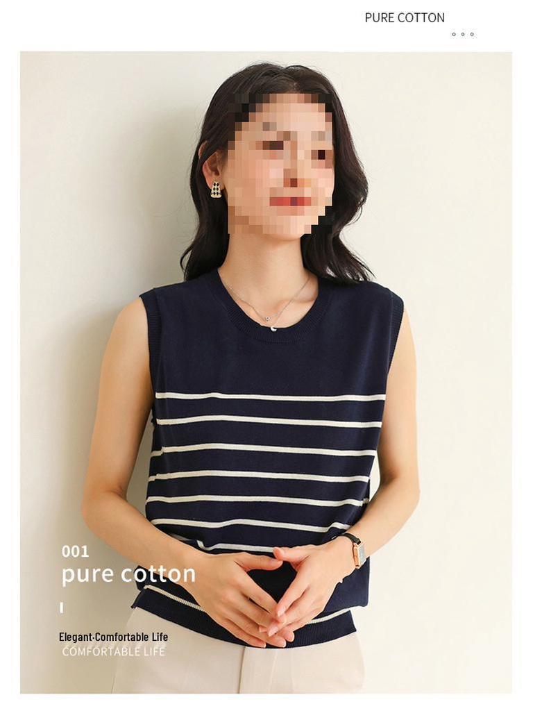 Женский летний полосатый хлопковый трикотажный жилет без рукавов - Модный топ, омолаживающий образ