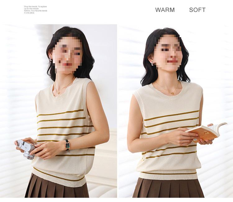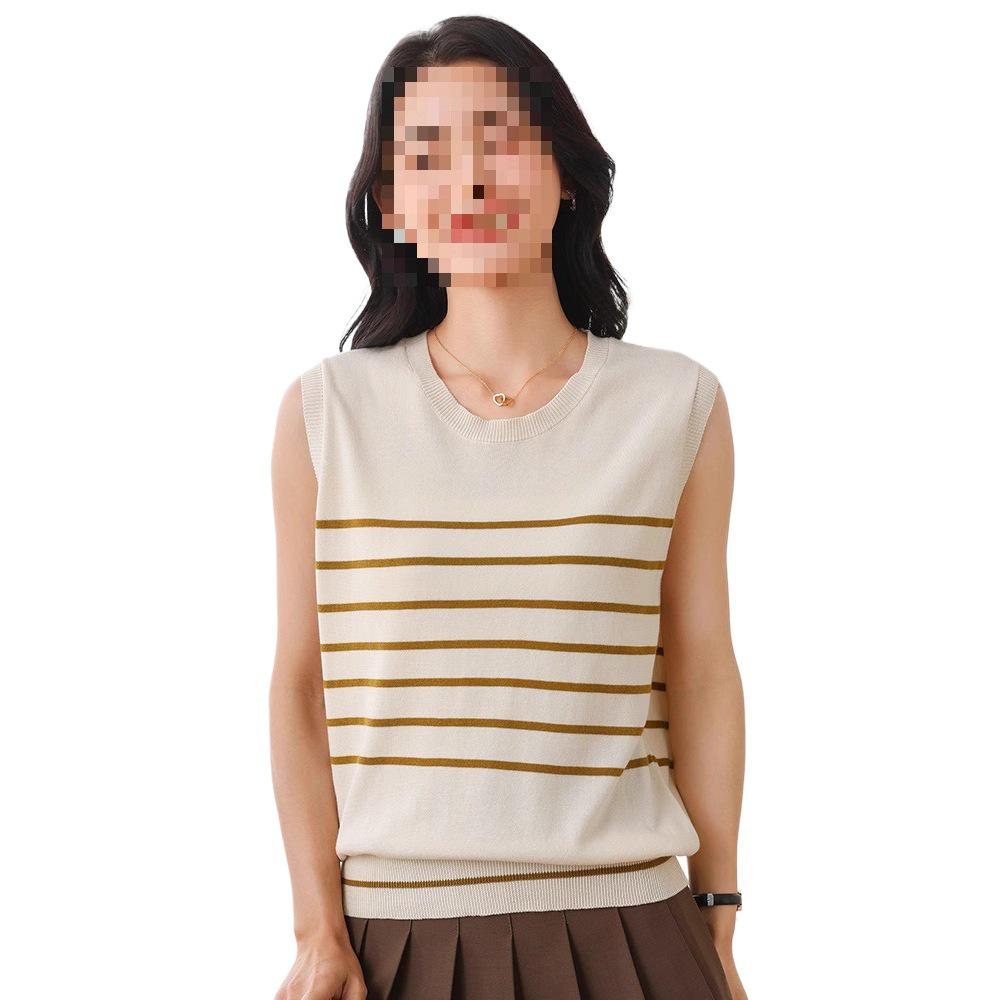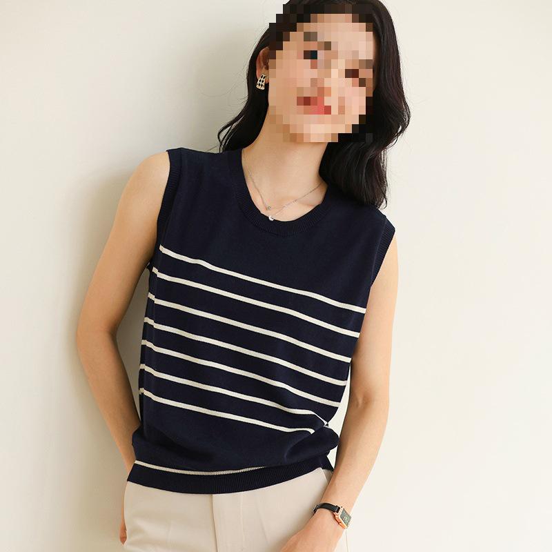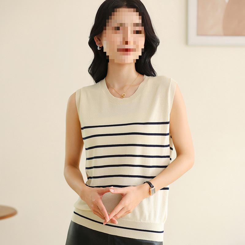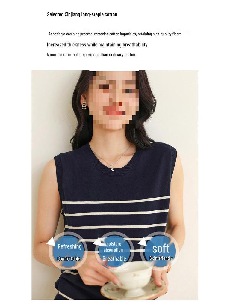 Женский летний полосатый хлопковый трикотажный жилет без рукавов - Модный топ, омолаживающий образ