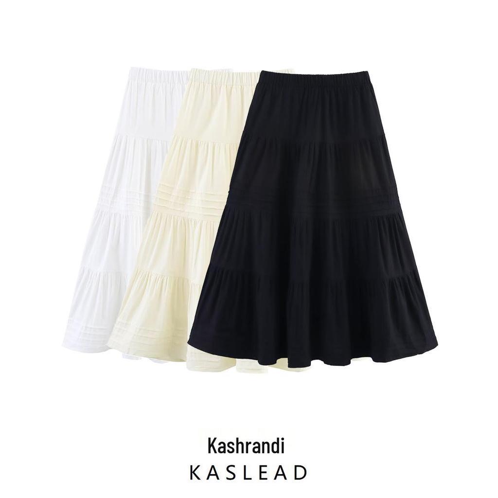Весна 2025 Женская мода Европейский и американский стиль Хлопковая полосатая многослойная миди юбка-свинг