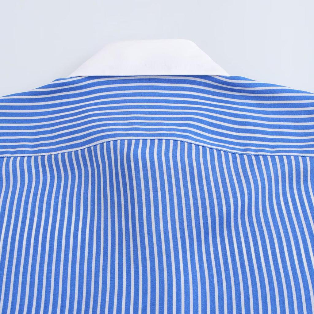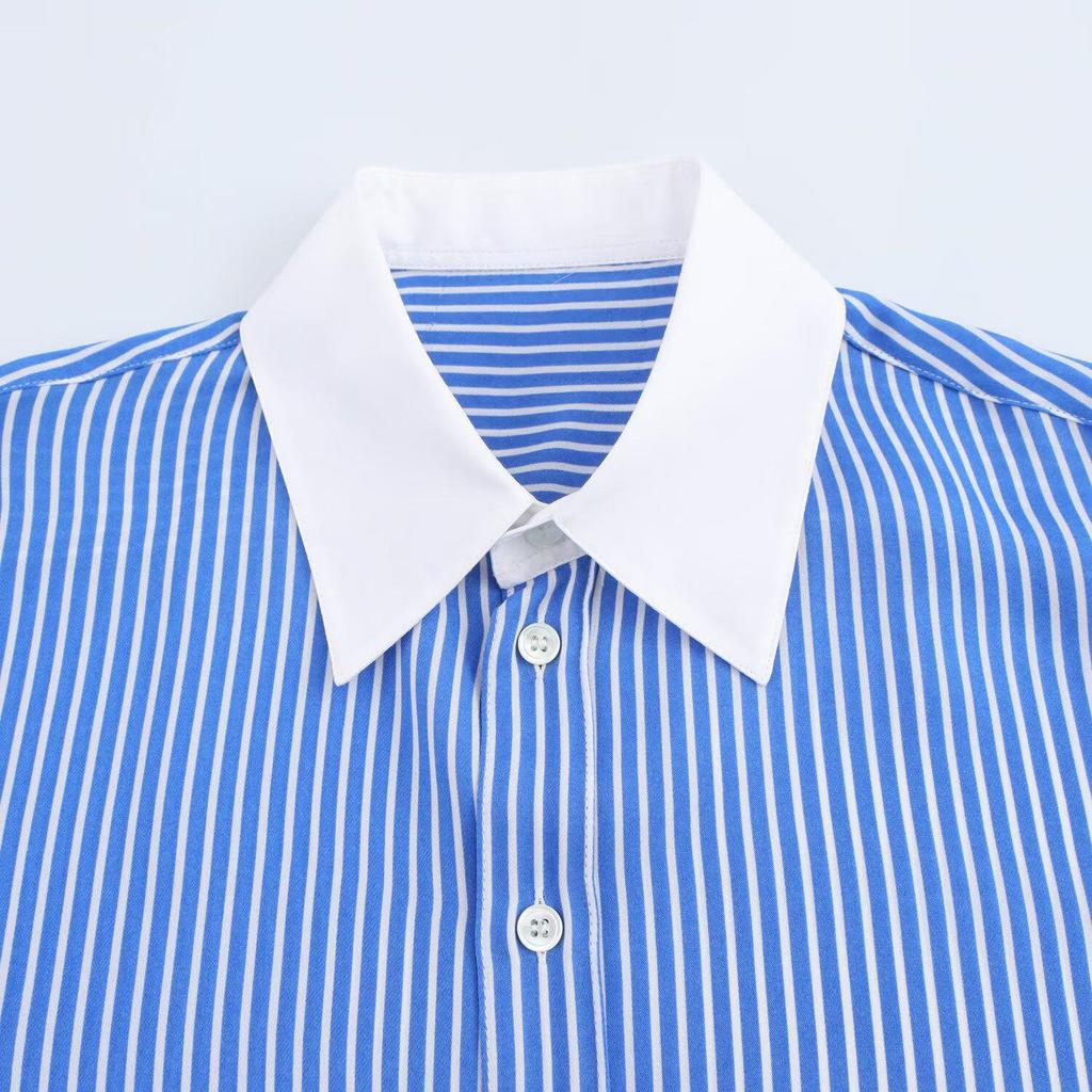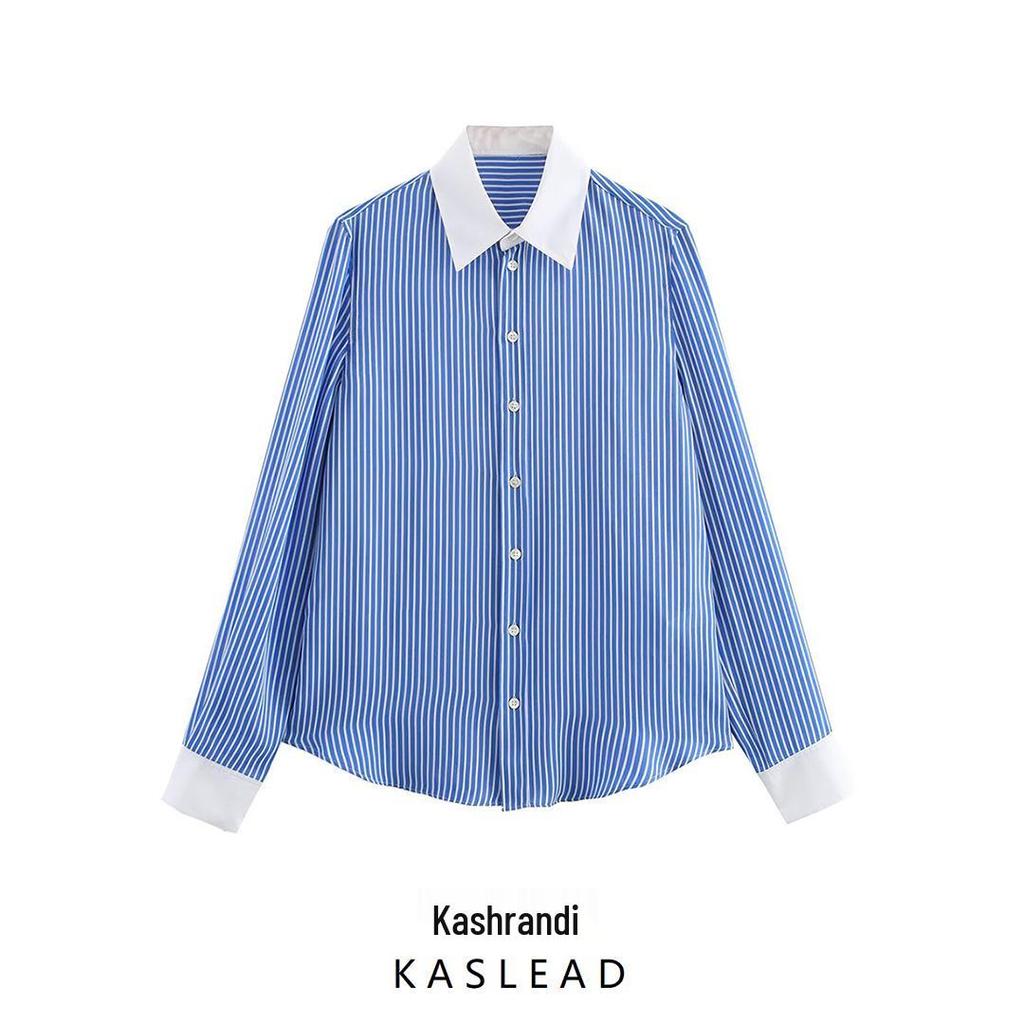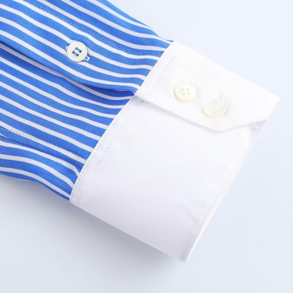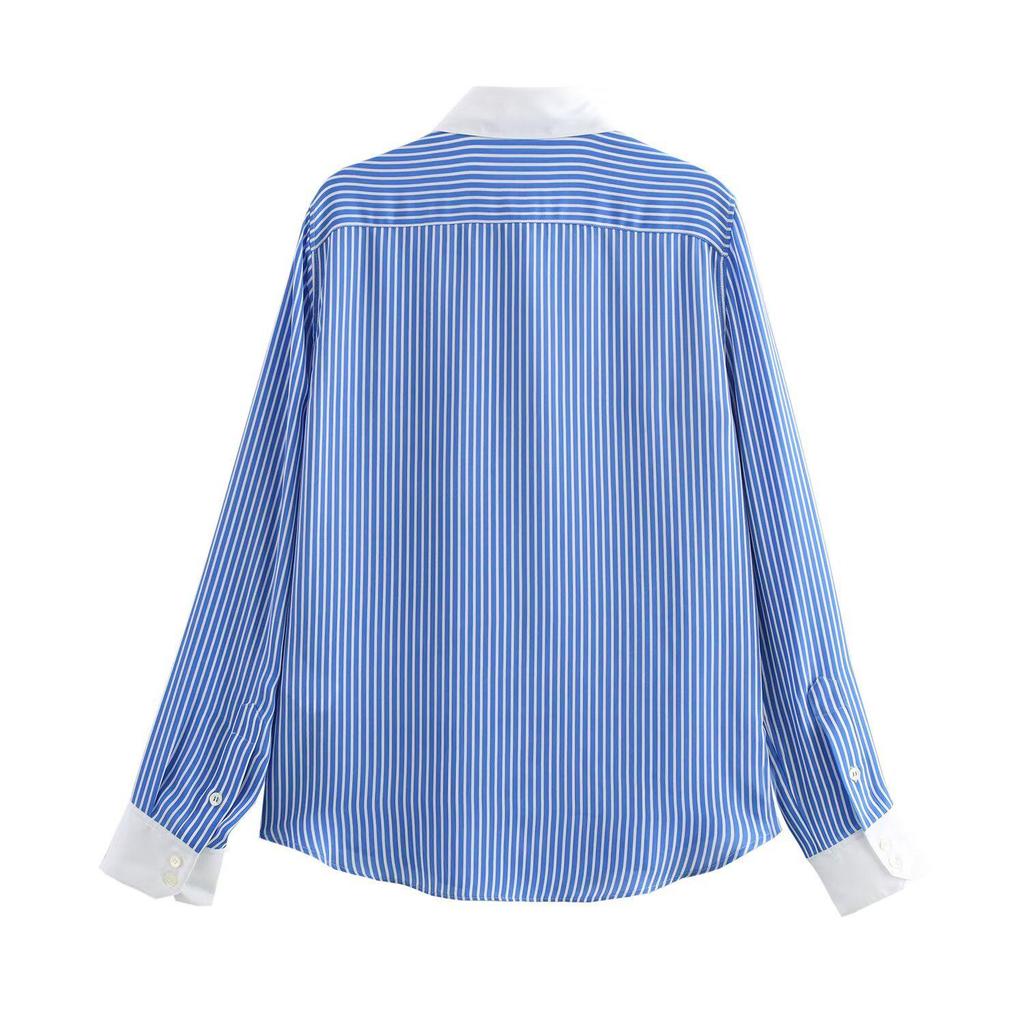 Color Block Striped Faux Silk Long Sleeve Shirt - European & American Style