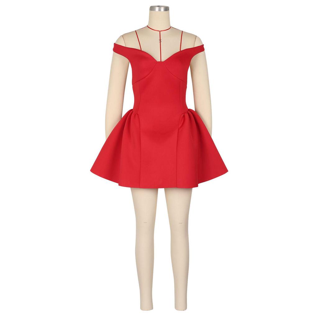 Европейское и американское женское сексуальное платье для вечеринки с V-образным вырезом и рукавами-буфами - летний клубный стиль