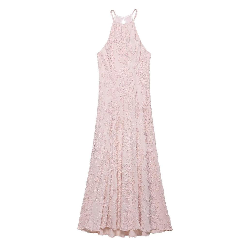 Летнее женское платье 2025 года в европейском и американском стиле с бретелью через шею - Модное, Простая текстура