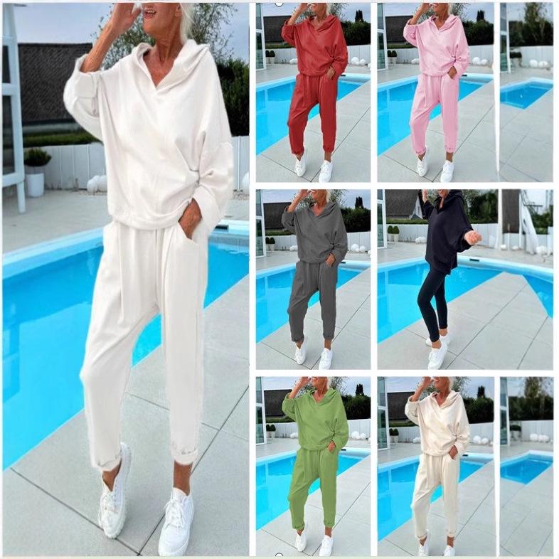 Осенний женский однотонный худи с капюшоном и брюки — купить товар онлайн с бесплатной доставкой до всему миру!