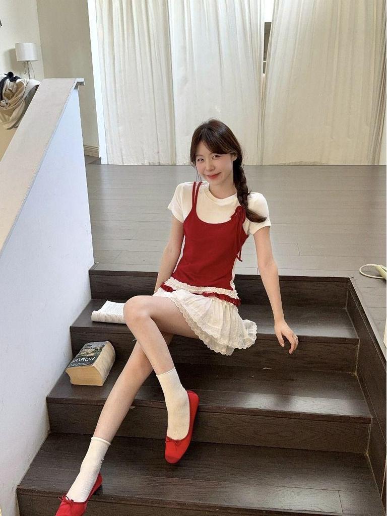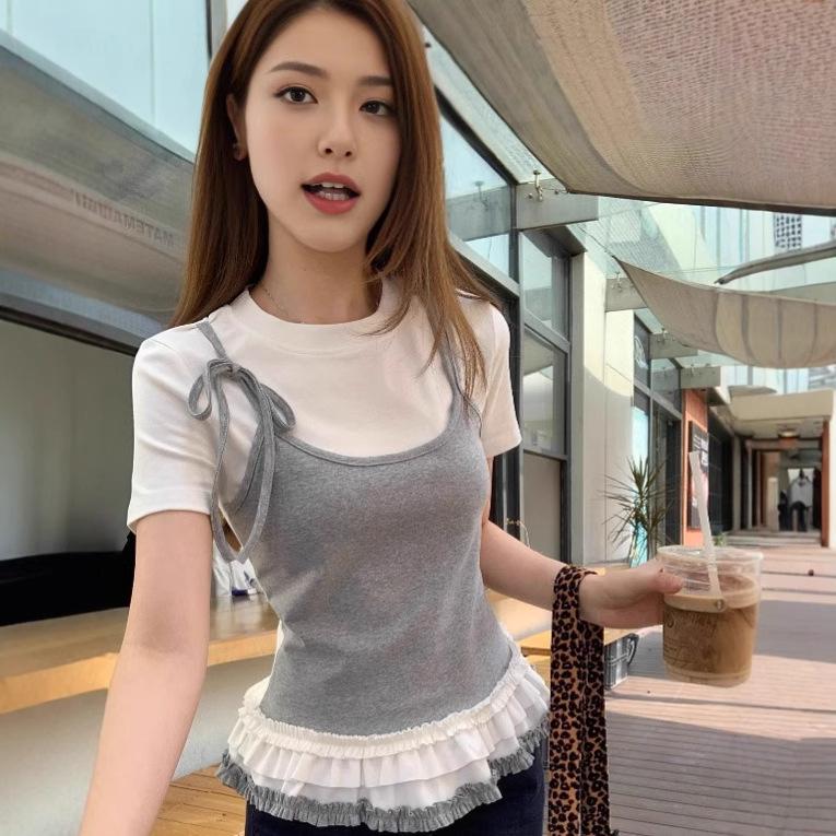 Летняя майка-слинг с кружевной отделкой и цветными блоками, 2025: Дизайн «Сладкая и острая девушка»