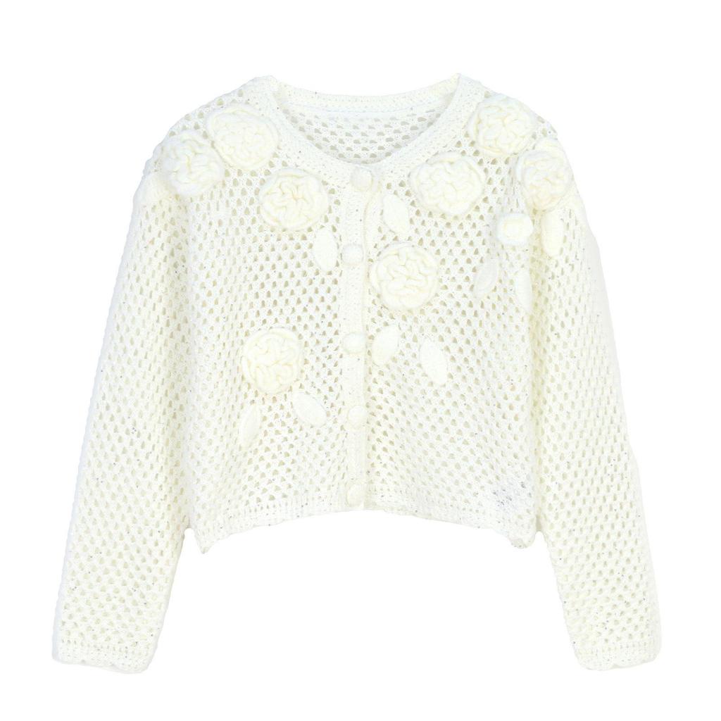 Вязаный крючком кардиган ручной работы с длинным рукавом и узором «ретро роза»