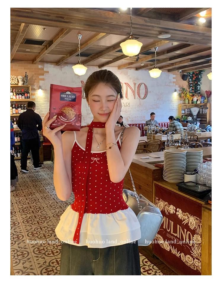 Элегантный топ-халтер в горошек с плиссировкой - Весна 2025, стиль с облеганием талии