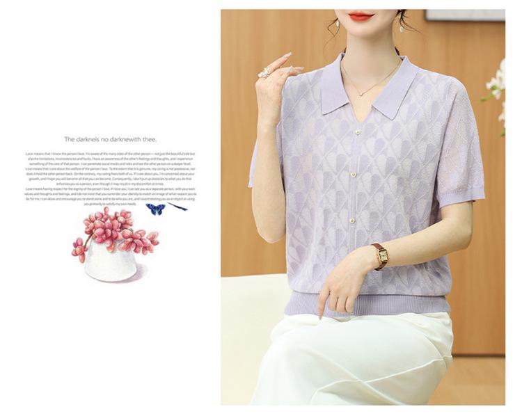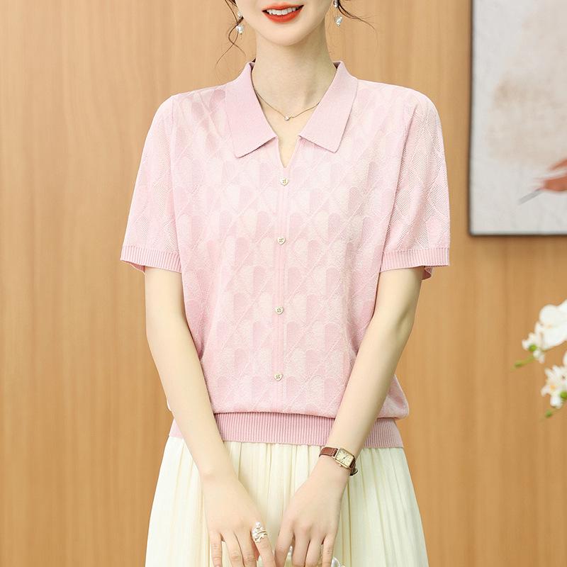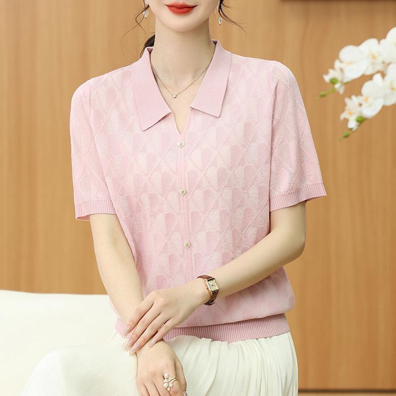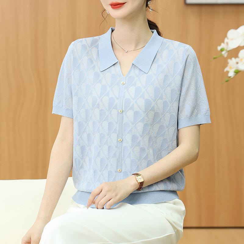 Летний топ из прохладного трикотажа «ледяной шелк» с коротким рукавом для женщин среднего и пожилого возраста