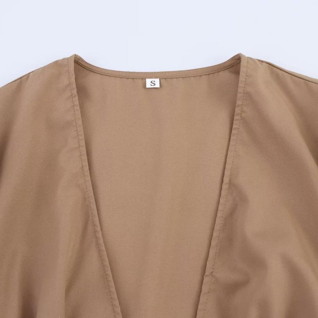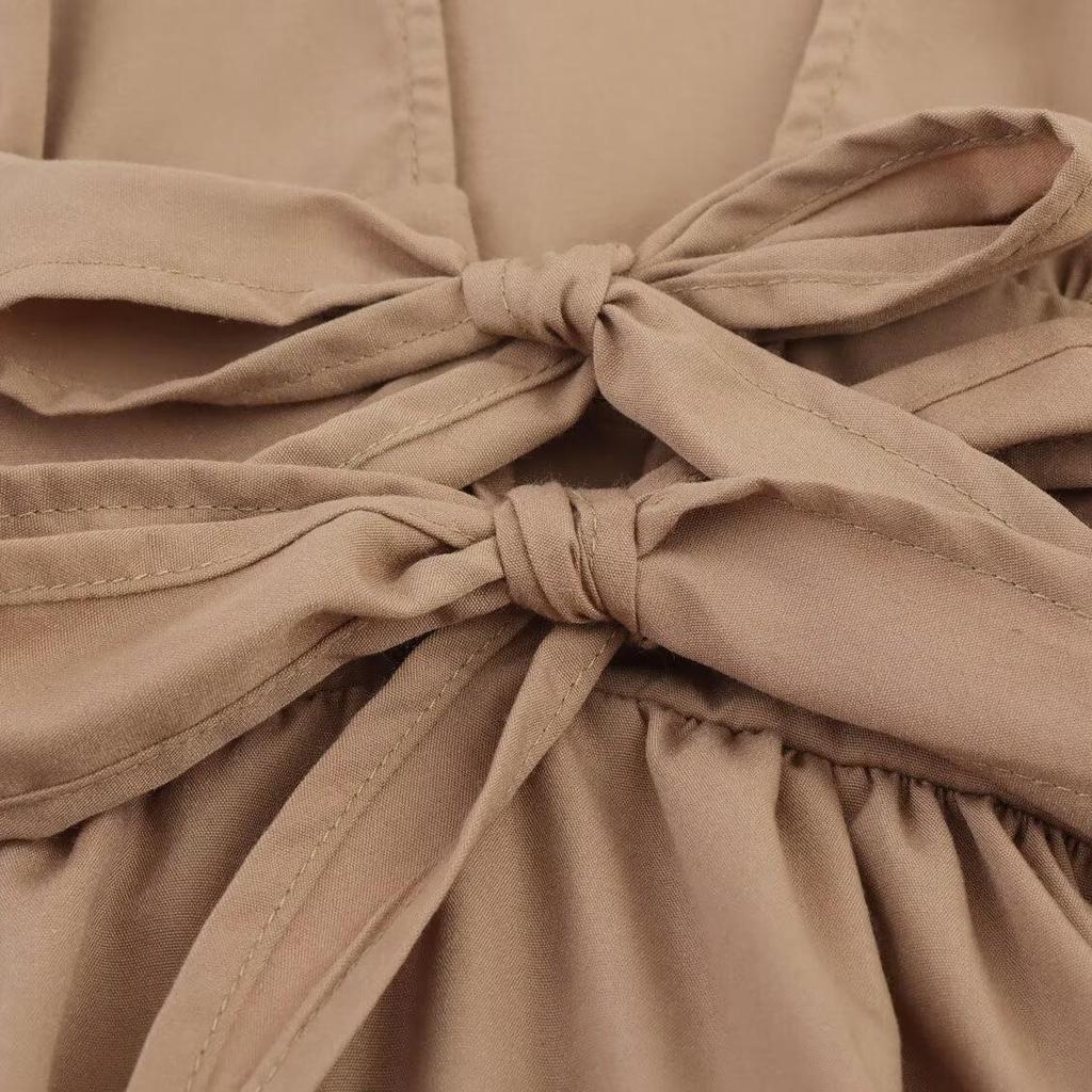 Летнее женское платье в европейском и американском ретро-стиле 2025 года с рукавами-фонариками, V-образным вырезом и украшением в виде банта