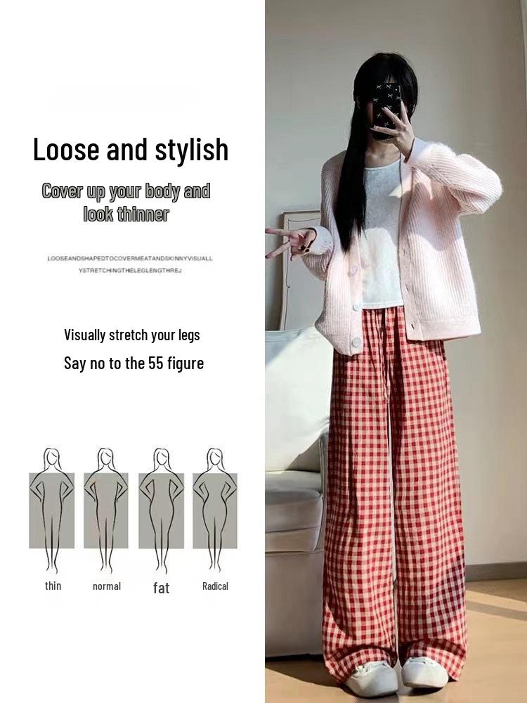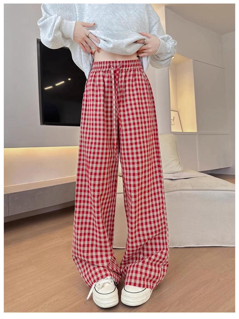 Ощутите непринужденный стиль и комфорт с этими женскими брюками с высокой талией и широкими штанинами в красную клетку.. Эти брюки, выполненные в расслабленном ленивом стиле, идеально подходят для весеннего и осеннего сезонов.. Изготовленные из высококачественного полиэстера, они имеют льстящую высокую линию талии, которая подчеркивает ваш силуэт.. Широкий крой обеспечивает свободу движений, что делает их идеальными для повседневной прогулки или уютного дня дома.. Оцените неподвластное времени очарование клетчатых узоров, наслаждаясь легким и дышащим ощущением этих универсальных брюк.