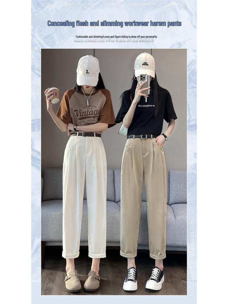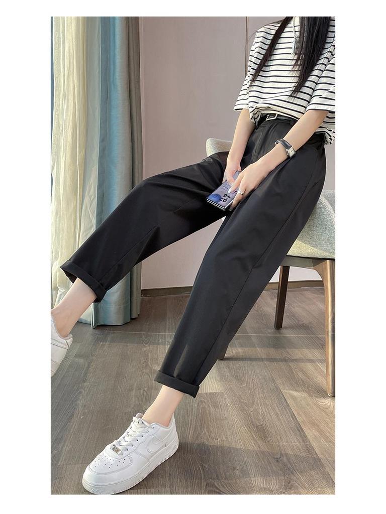 2024 High Waist Black Harem Carrot Pants for Women - Slimming, Lightweight, Nine-Point Style