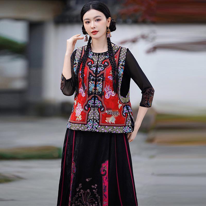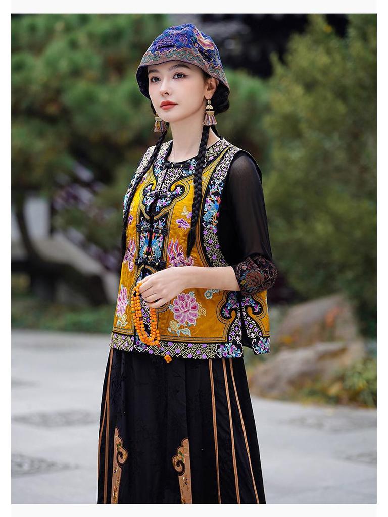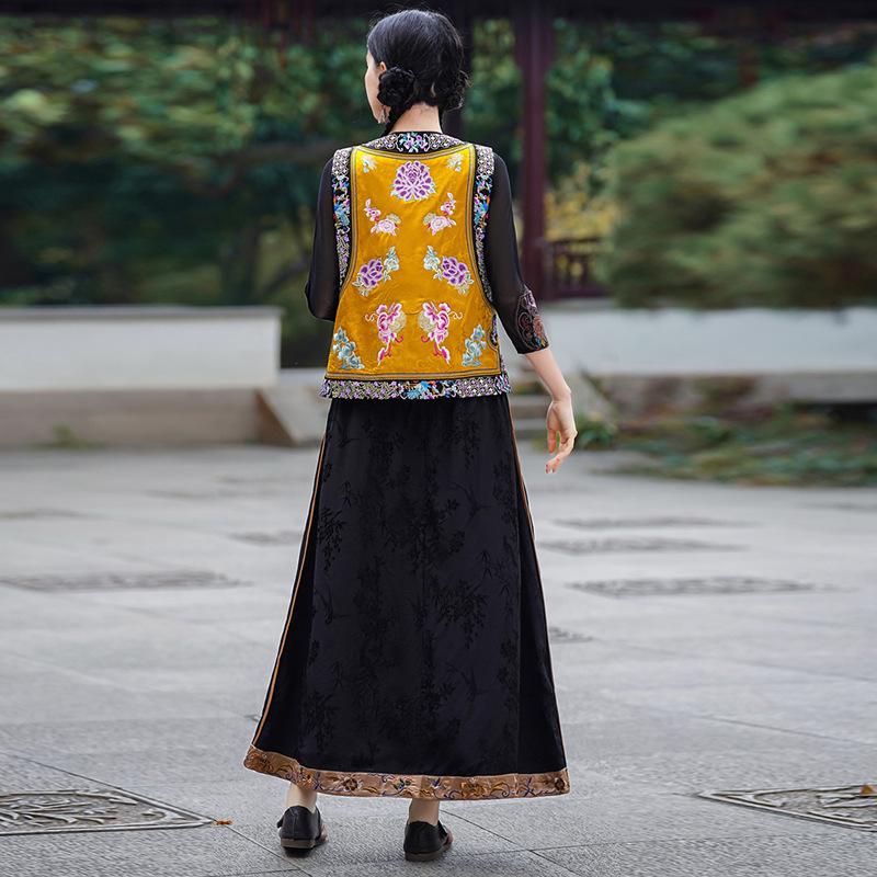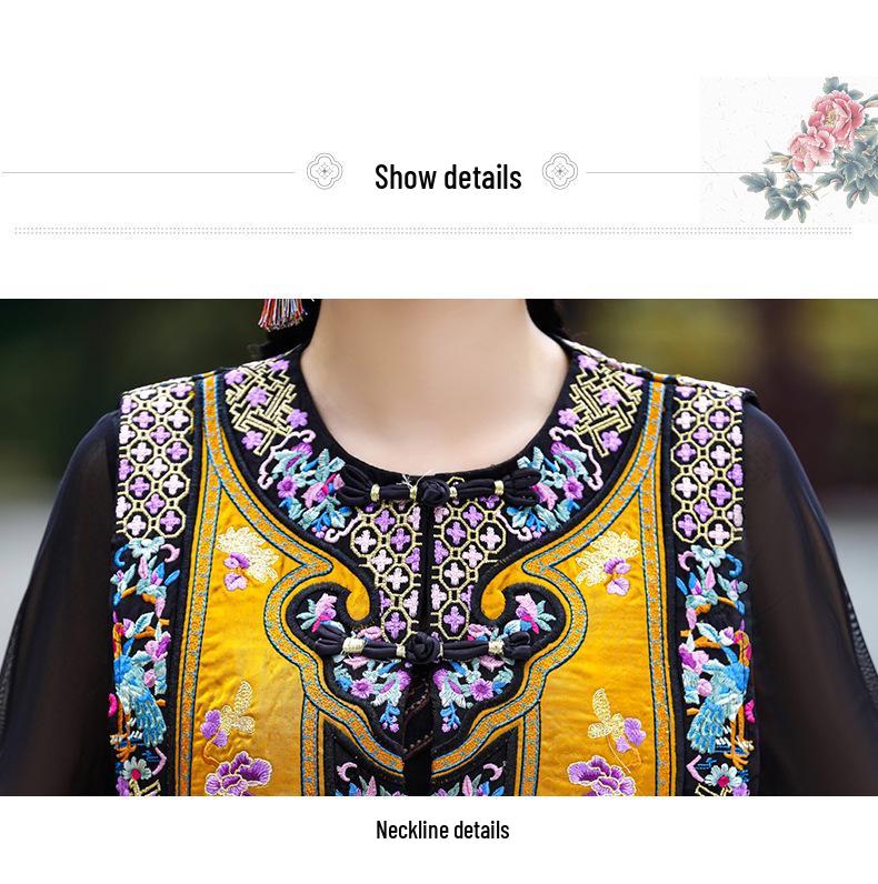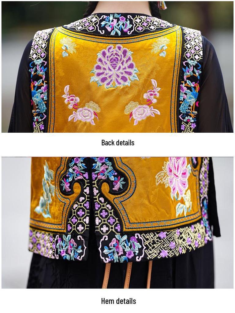 Этнический шелковый вышитый короткий жилет - кардиган в новом китайском стиле