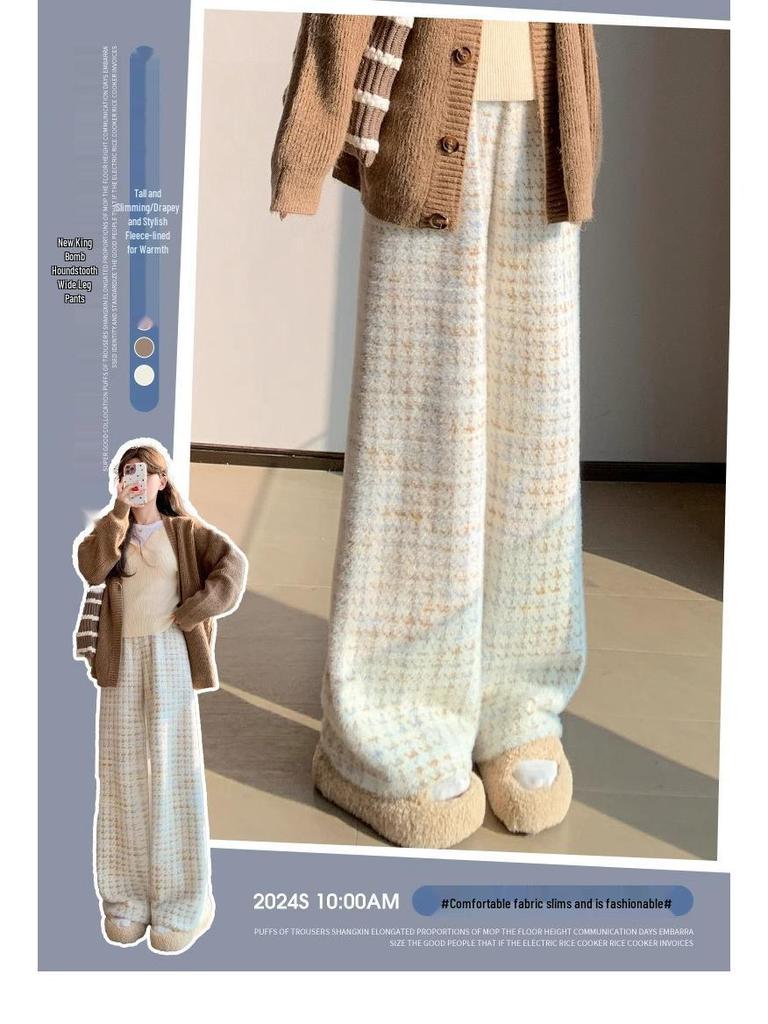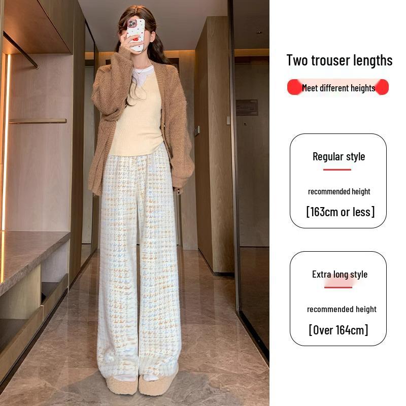 Пополните свой осенне-зимний гардероб этими стильными женскими брюками широкого кроя, изготовленными из роскошной шерстяной смеси, которая обеспечивает как тепло, так и элегантность.. Эти бархатные брюки с высокой посадкой отличаются шикарным клетчатым узором «гусиная лапка» в уникальном кофейно-голубом цвете, идеально подходящим для добавления нотки изысканности любому наряду.. Брюки спортивного кроя обеспечивают комфорт благодаря добавлению спандекса для гибкости и посадке petite, которая адаптируется к более низкому росту.. Идеально для того, чтобы оставаться модным и уютным в прохладные месяцы.