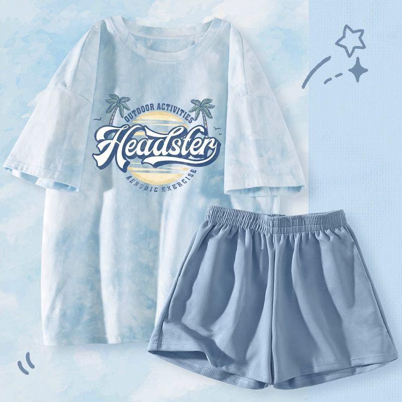 Женский комплект для сна из двух частей с мультяшным принтом тай-дай - с короткими рукавами, удобная летняя одежда для дома