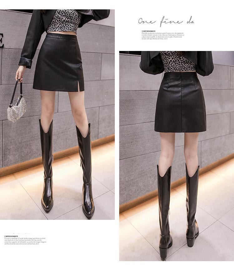 Женская короткая юбка А-силуэта из ПУ кожи с высокой талией 2023 - Мода осень/зима