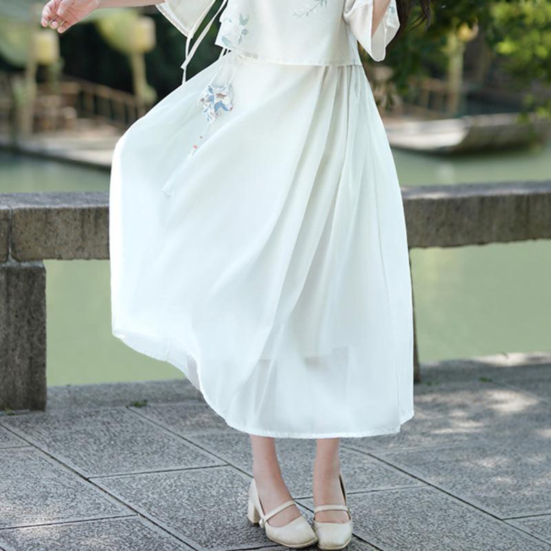 Этот комплект из двух предметов прекрасно сочетает в себе традиционную китайскую элегантность и современный комфорт.. Топ выполнен в классическом стиле танского костюма, а ансамбль дополнен юбкой в чайном стиле в духе дзен.. Обе вещи изготовлены из высококачественного полиэстера, обеспечивающего мягкую и прочную отделку.. Идеально подходящий как для повседневной носки, так и для особых случаев, этот набор предлагает уникальное сочетание культурного наследия и современного стиля.