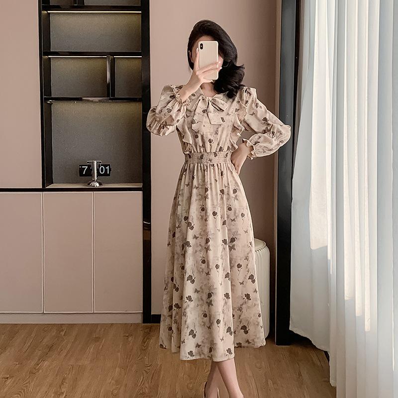 Корейское шифоновое платье с оборками и принтом и рукавами-буфами — купить товар онлайн с бесплатной доставкой до всему миру!