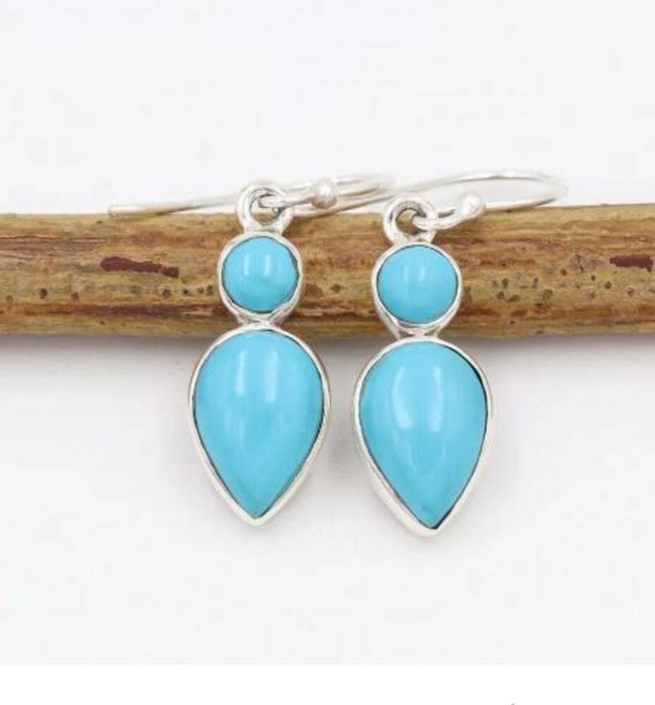 Бирюзовый драгоценный камень Женская серьга-подвеска, Массивное серебро 925 пробы Заявление Серьги Ювелирные изделия