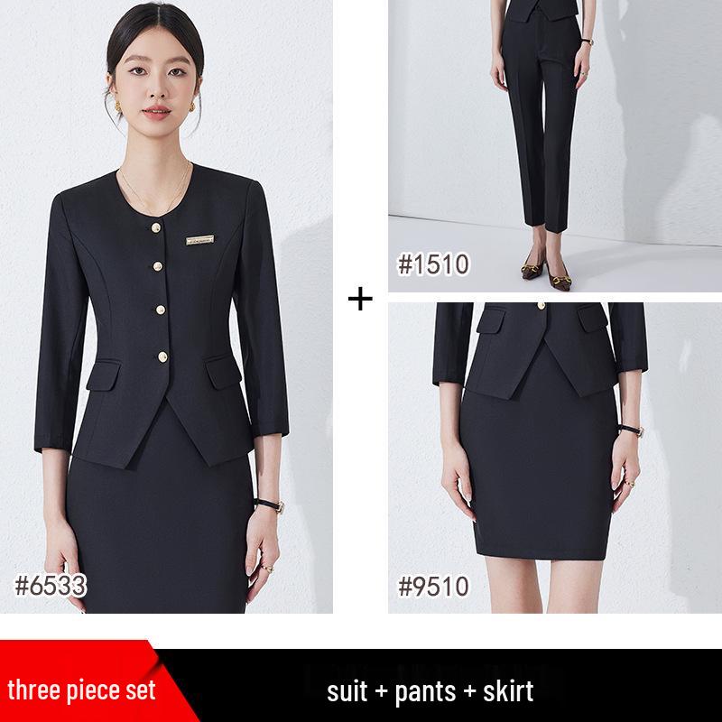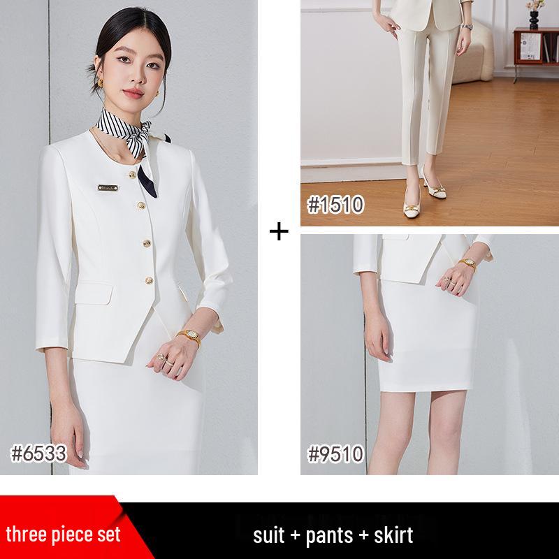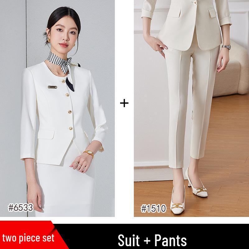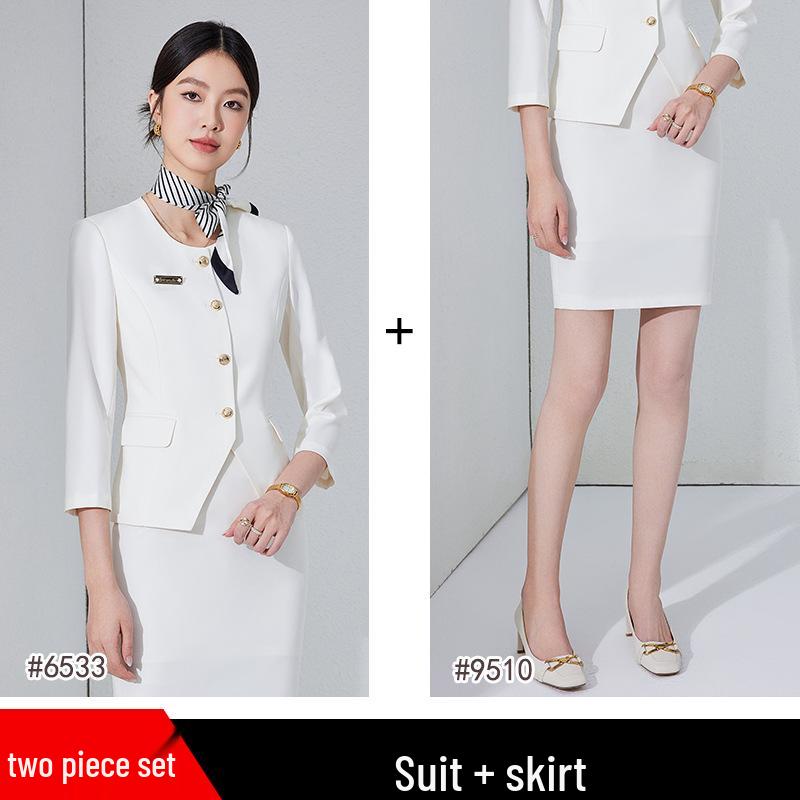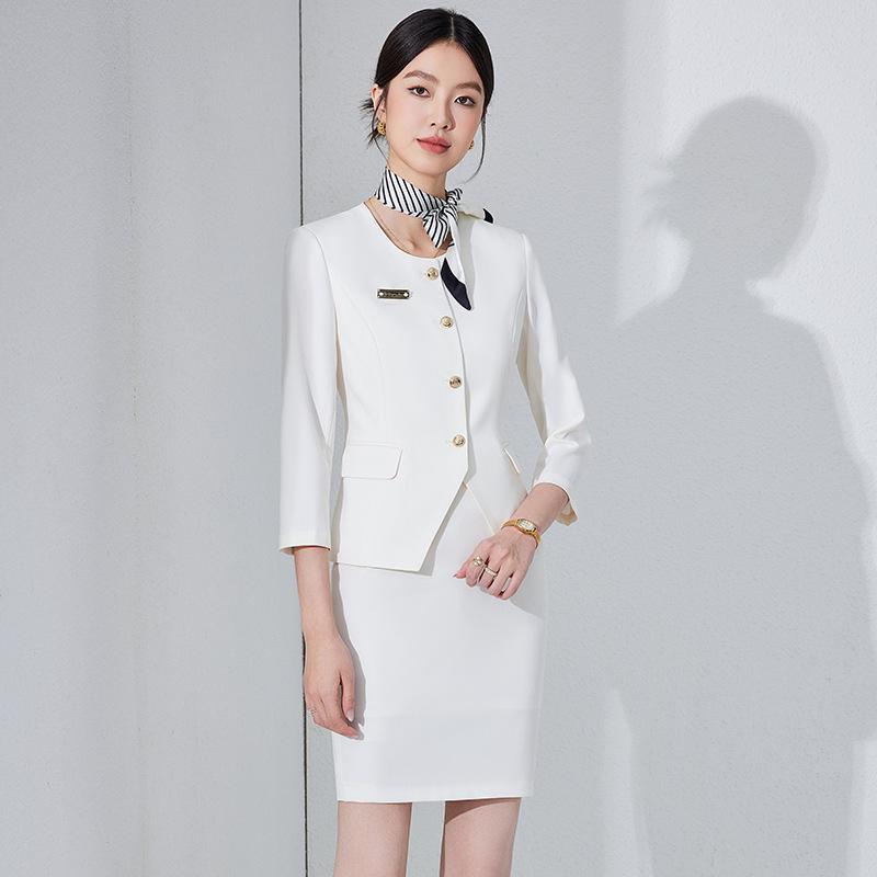 Откройте для себя идеальное сочетание профессионализма и стиля с этим женским профессиональным костюмом для работы, разработанным для менеджеров в отелях, салонах и ювелирных магазинах.. Этот элегантный юбочный костюм изготовлен из высококачественного полиэстера, обеспечивающего как комфорт, так и долговечность для долгих рабочих дней.. Приталенный крой и классический дизайн костюма обеспечивают изысканный внешний вид, делая его идеальным выбором для тех, кто стремится произвести неизгладимое впечатление в должностях, связанных с общением с клиентами.