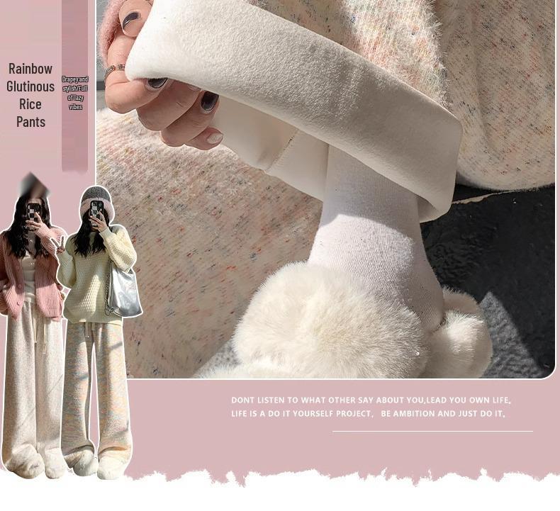 Откройте для себя максимальный комфорт и стиль с этими флисовыми брюками с высокой талией, свободного кроя и широкими штанинами, созданными для спортивного, но шикарного образа.. Изготовленные из прочного полиэстера, эти брюки обеспечивают тепло и уют благодаря своей мягкой внутренней подкладке.. Яркий радужный дизайн добавляет игривый штрих, идеально подходит для добавления ярких красок в ваш гардероб.. Идеальные как для повседневных прогулок, так и для активных дней, эти брюки обеспечивают удобную посадку и модный вид.