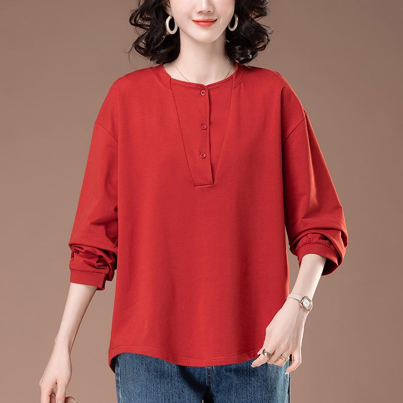 Хлопковая рубашка с длинным рукавом большого размера для женщин среднего возраста - Свободный крой, скрывает живот, Идеально подходит для весны и осени (Стиль 6322) — купить товар онлайн с бесплатной доставкой до всему миру!